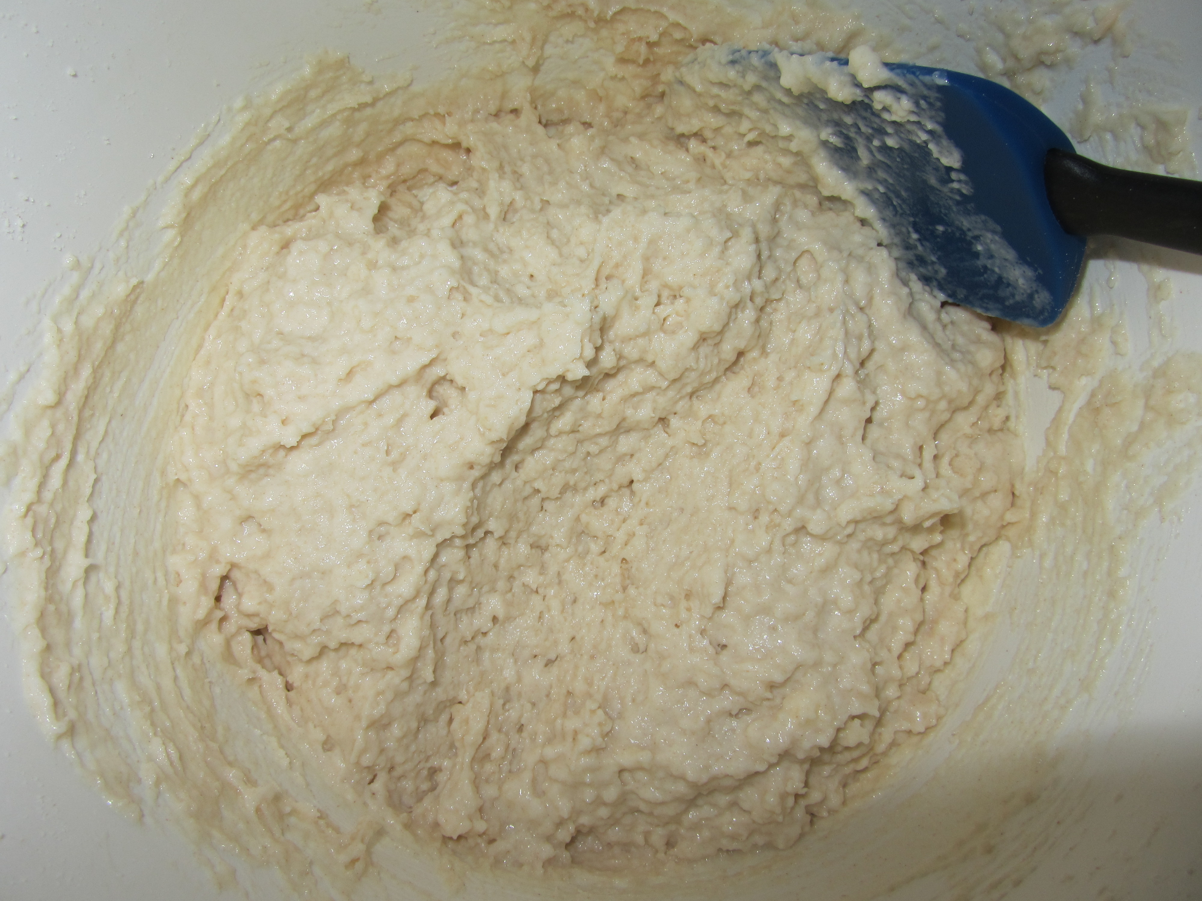 I then mixed in my buttermilk, being cautious not to overwork the dough. Alton and his grandmother emphasize this point in the episode, saying overworking the dough can lead to tough biscuits. My dough seemed wet and sticky, and like it would possibly be difficult to work with once turned out onto my board.