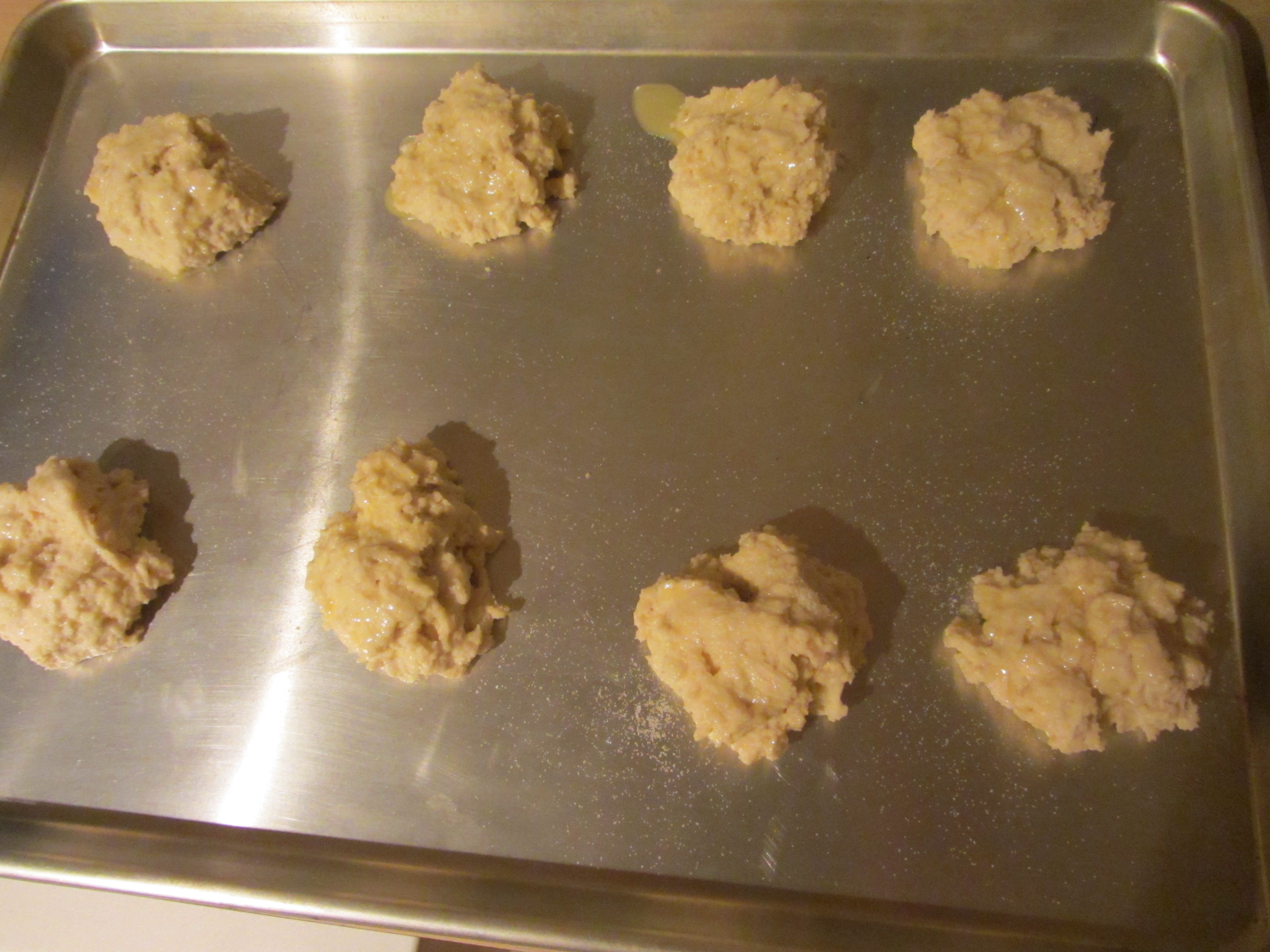 Dough dropped onto baking sheet, brushed with melted butter, and sprinkled with sugar.