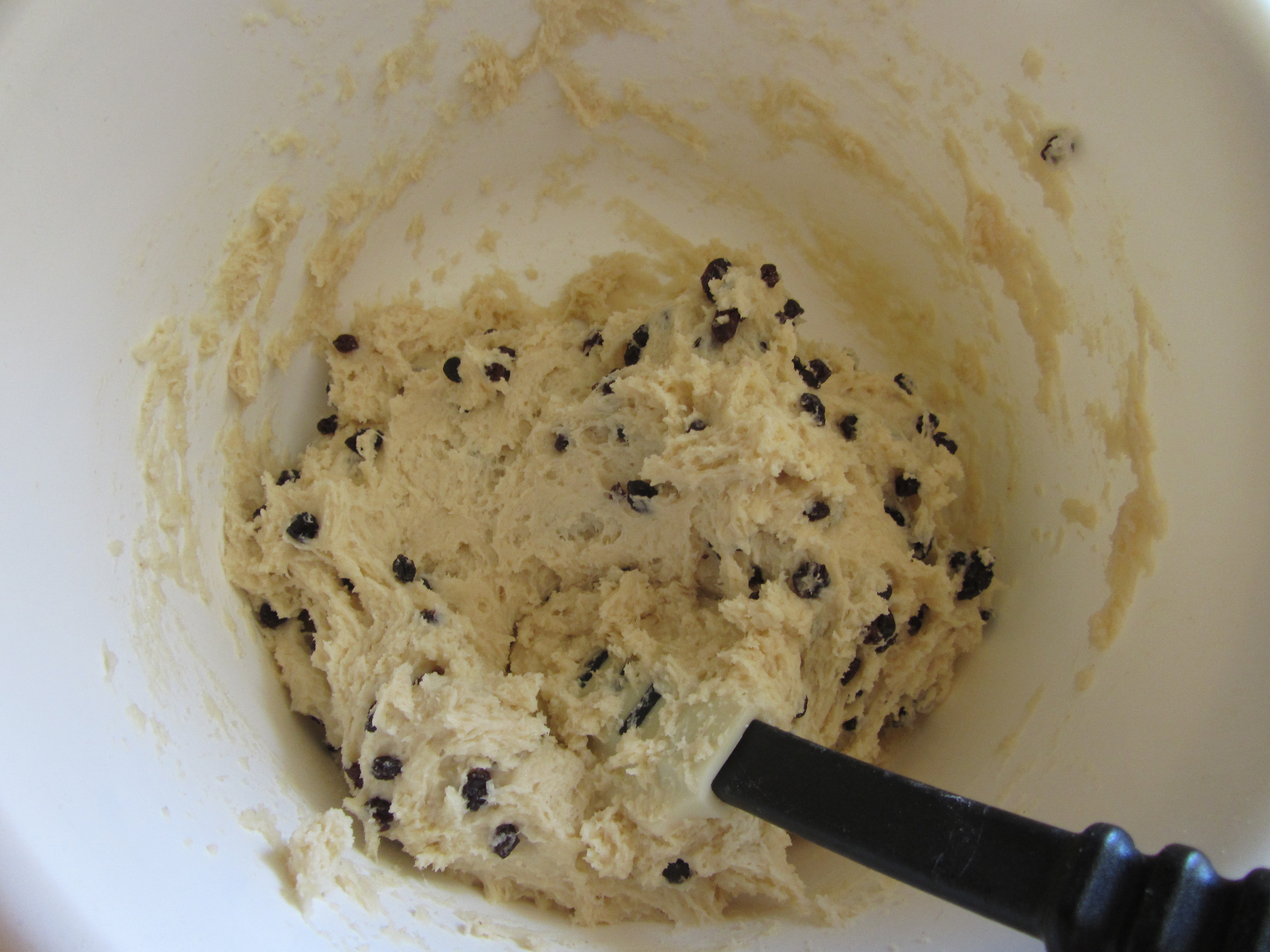 Currants or dried cranberries (I used currants) are then lightly mixed into the dough, which is turned out onto a board and cut into individual scones.