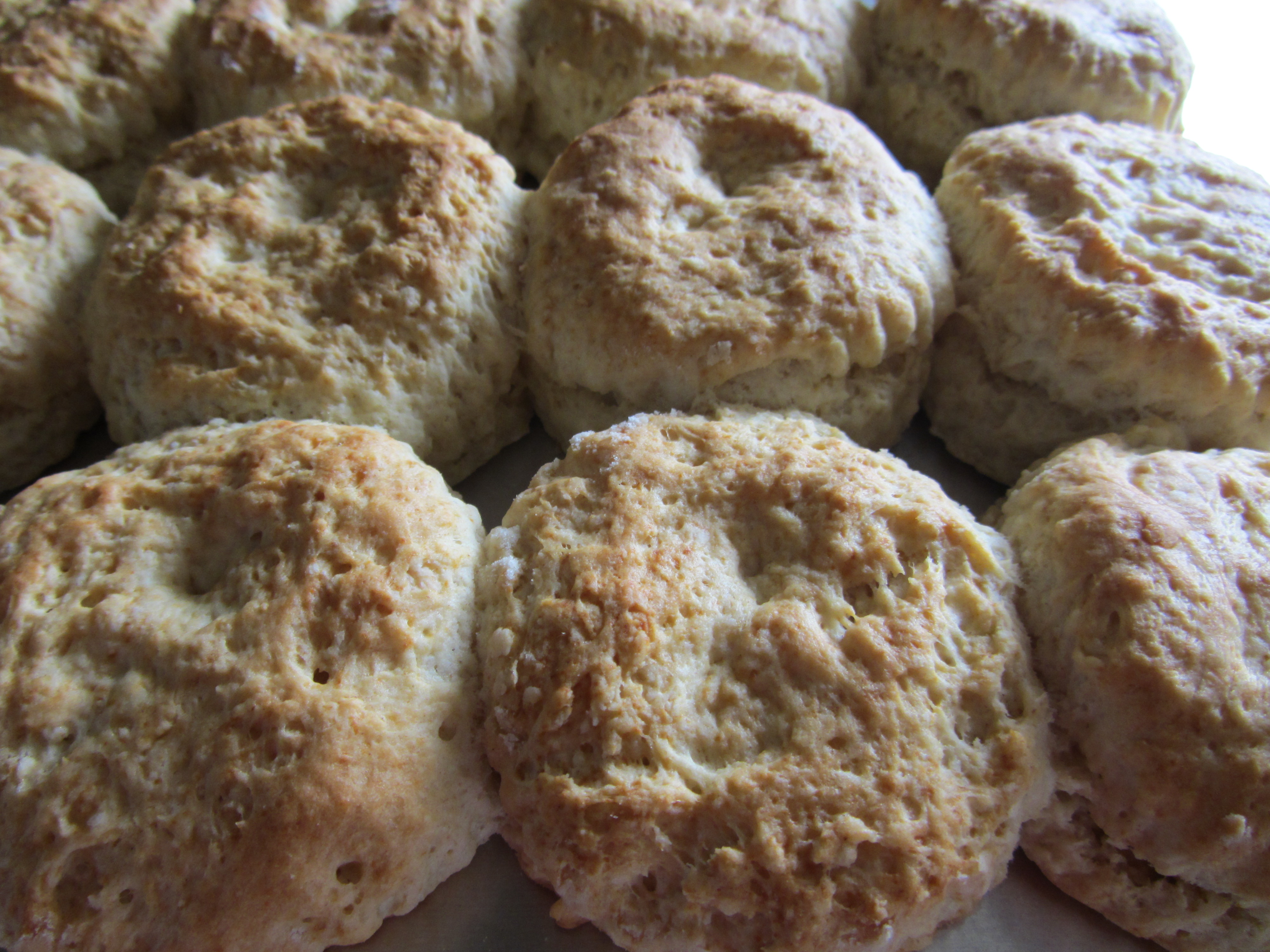 I have previously mentioned that differences exist between the recipes featured on Good Eats and the online versions of the same recipes. The recipes from the 7th episode had many differences, so I, of course, made the recipes as made on the show. The first of these recipes was for biscuits, as made by Alton’s grandmother. In the episode, Alton explains that it is desirable to make biscuits with soft flour, which has a lower protein content. You can use self-rising flour for this, or you can simulate soft flour by combining 3 parts of all-purpose flour with 1 part of cake flour; I did the latter. No mention of soft flour is made in the online recipe. In the episode, Alton tells you to use 10 oz. of flour, while the online recipe calls for 2 cups. He also tells you to weigh one ounce of butter and two ounces of shortening, while the online version calls for 2 T of each.