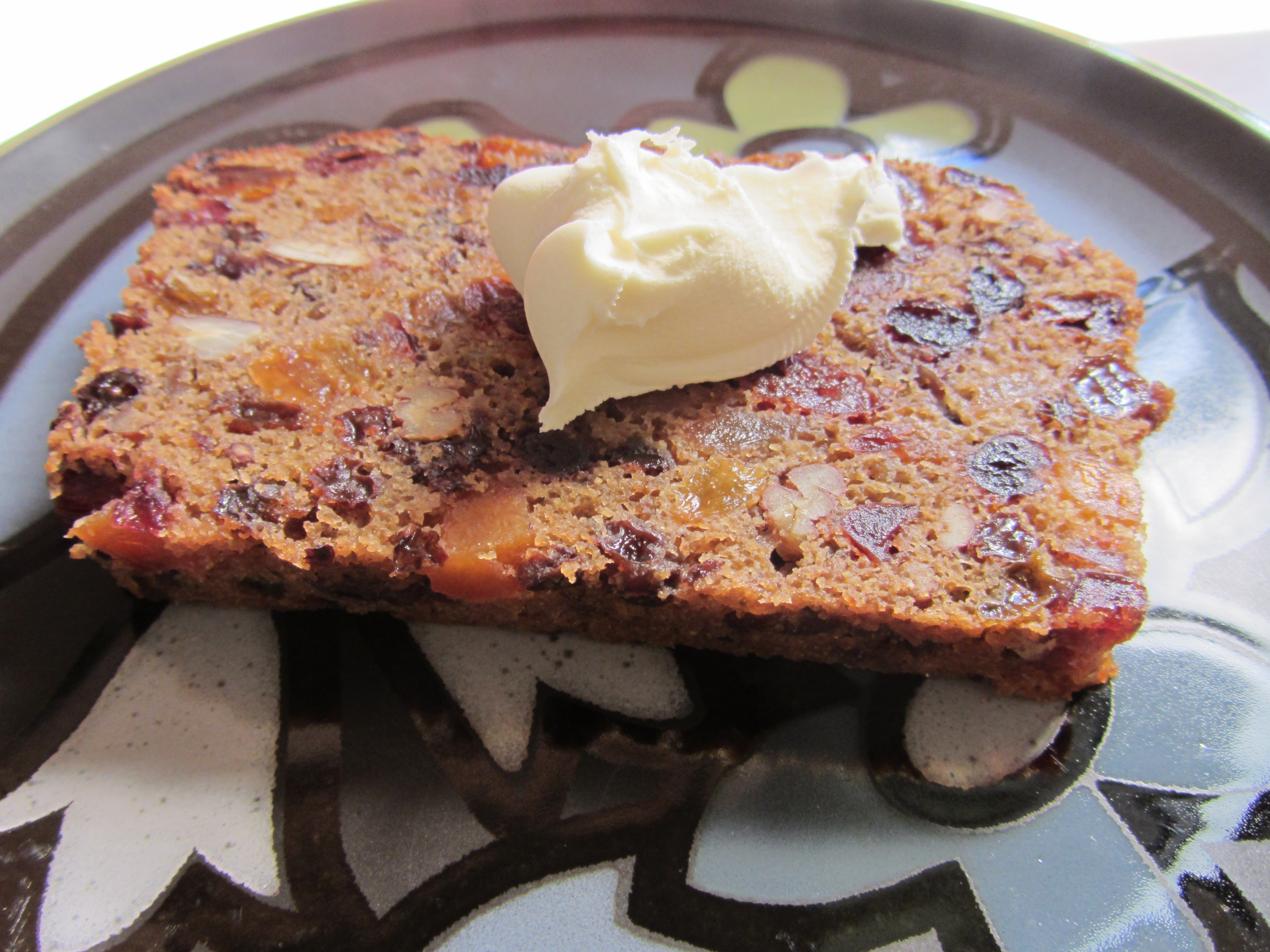 I shared some fruitcake with my parents also, and they both highly enjoyed it, saying they preferred it untoasted. As it sits, my cake was made 10 days ago, and we still have a hunk of it left. It has only gotten better since I first made it. This would be perfect to start a couple weeks before Christmas. I highly recommend this fruitcake recipe. It is perfect for a special occasion, and would also make a nice holiday gift, especially if you made it in mini loaf pans.