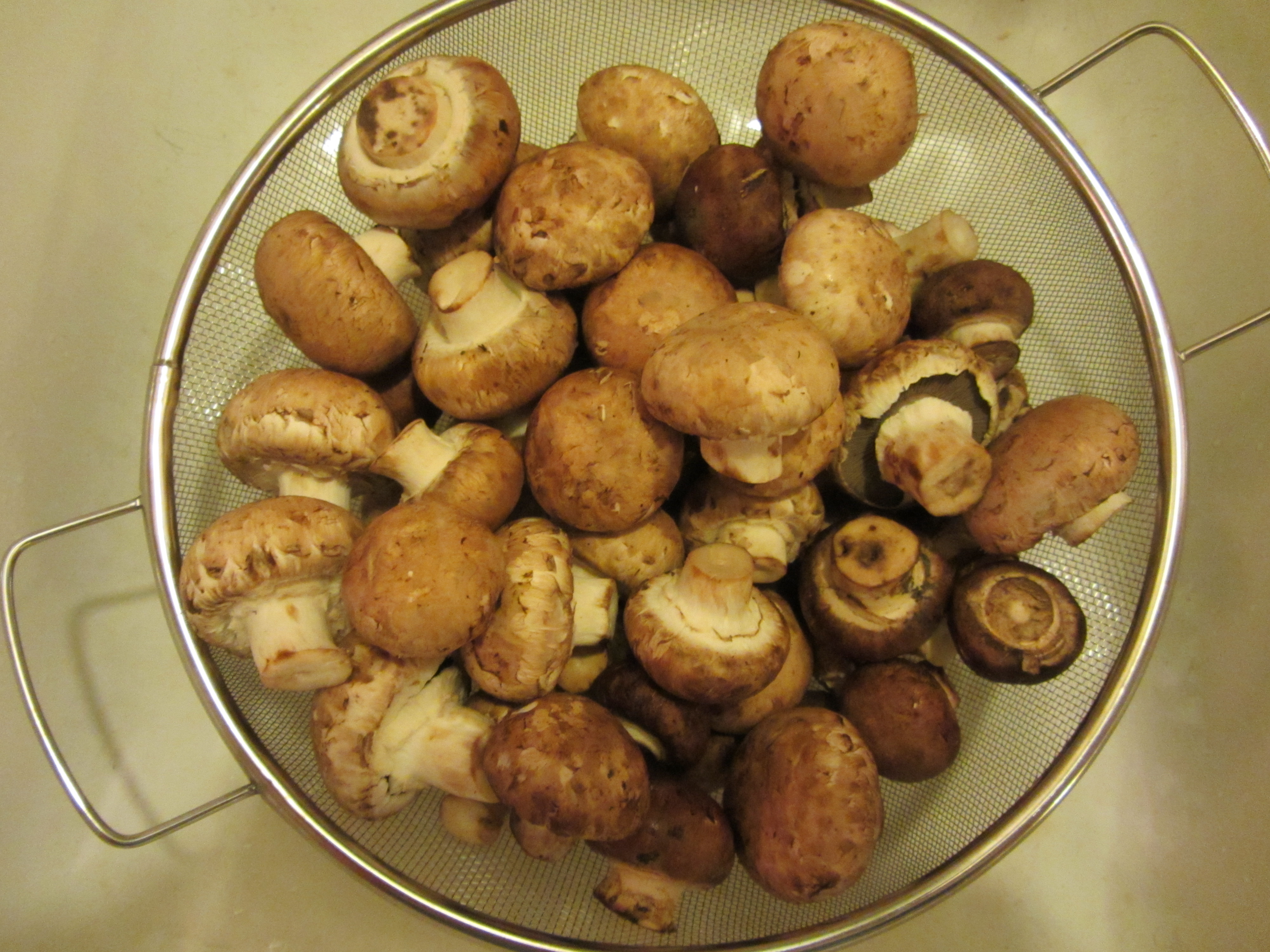 Other mushroom tips from Alton: 1) Store mushrooms in a paper bag. 2) Treat mushrooms like they are meat, using hot, fast, and dry cooking methods. For this particular recipe, you use cremini mushrooms. I washed my mushrooms and sliced them into 1/4″ slices. Apparently, an egg slicer works perfectly for slicing mushrooms, but we do not have one, so I did mine with a good ol’ knife.