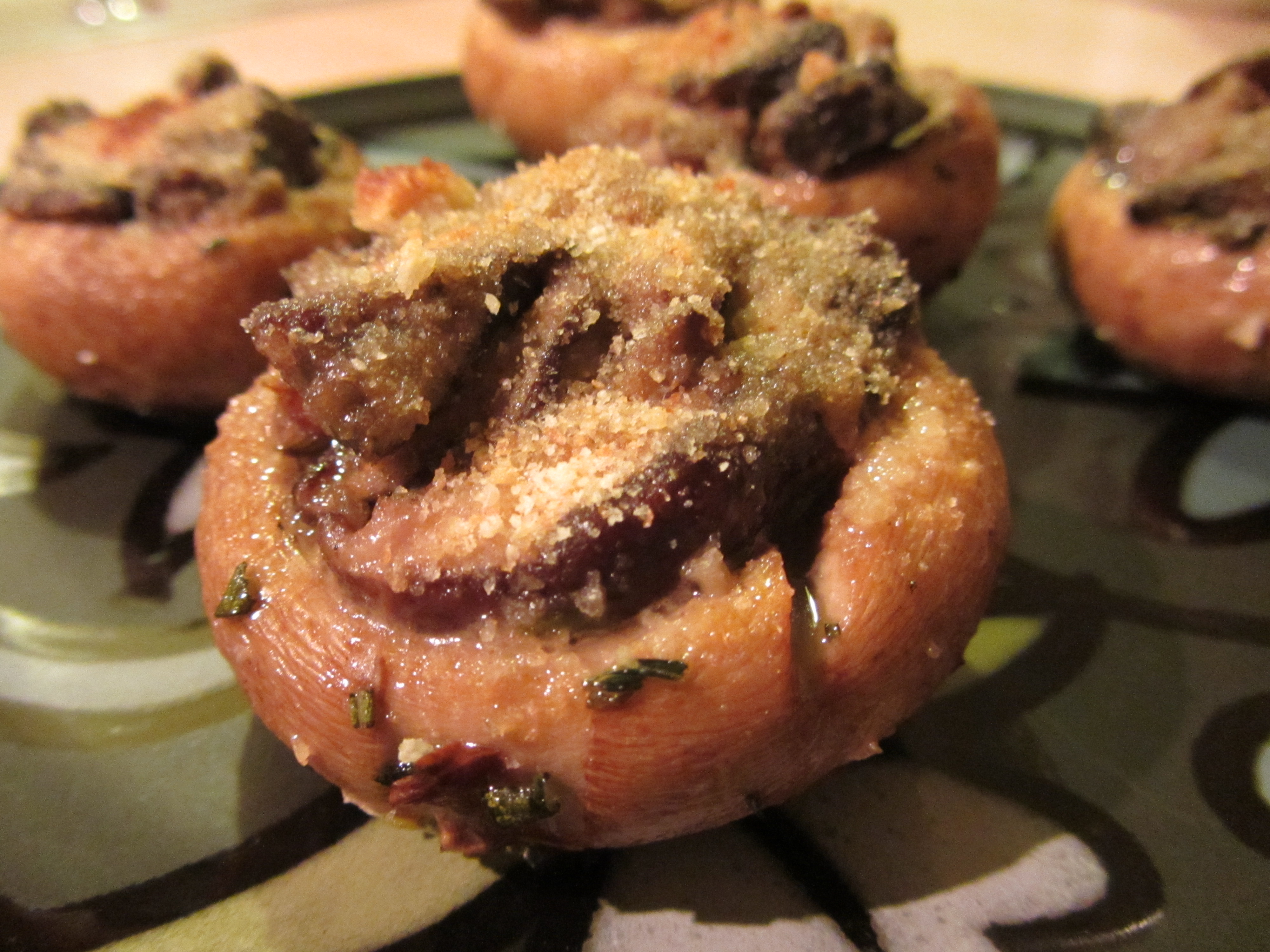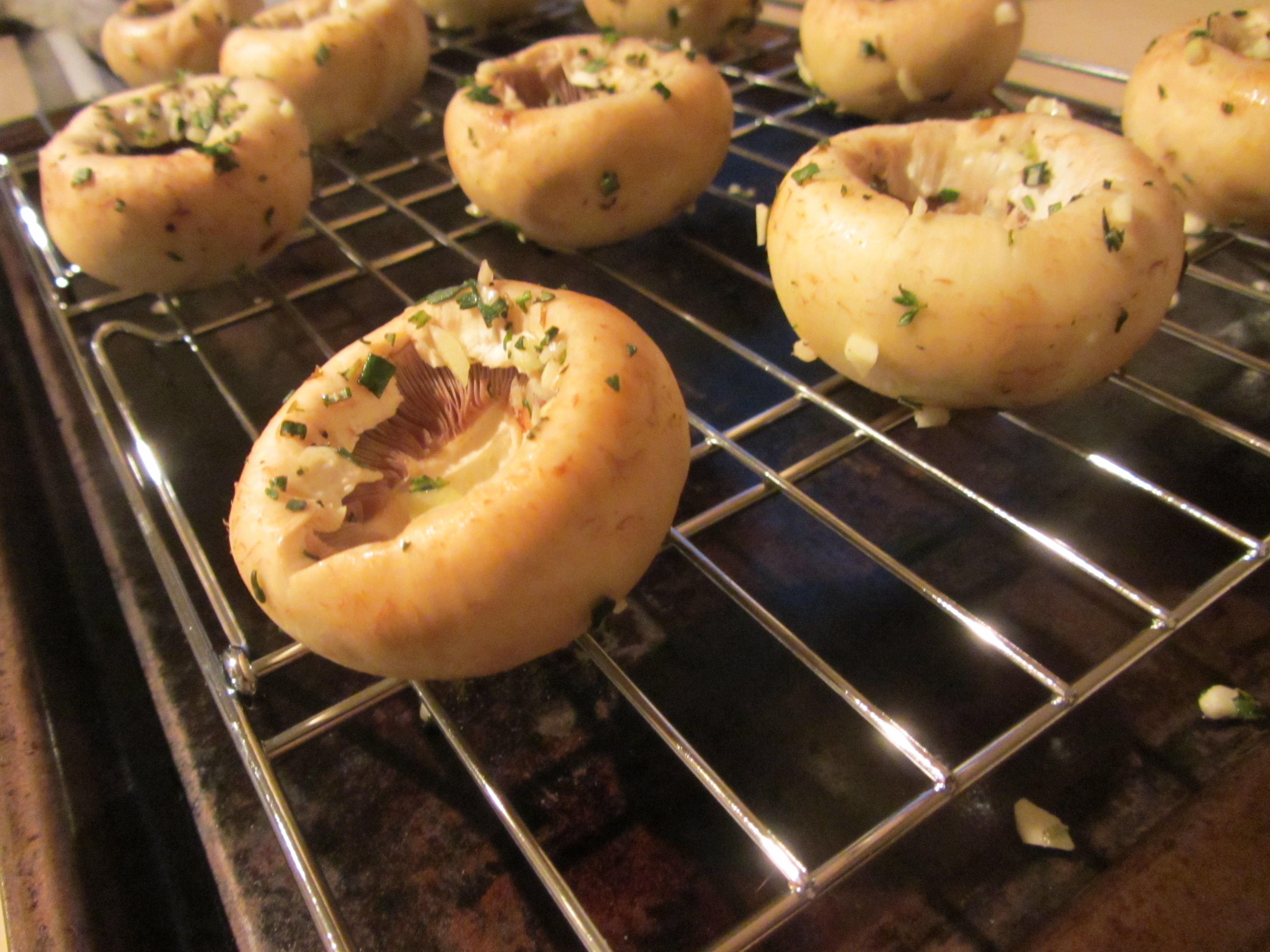 Mushrooms after baking. I forgot to turn mine upside down before I baked them, so they filled with fluid.