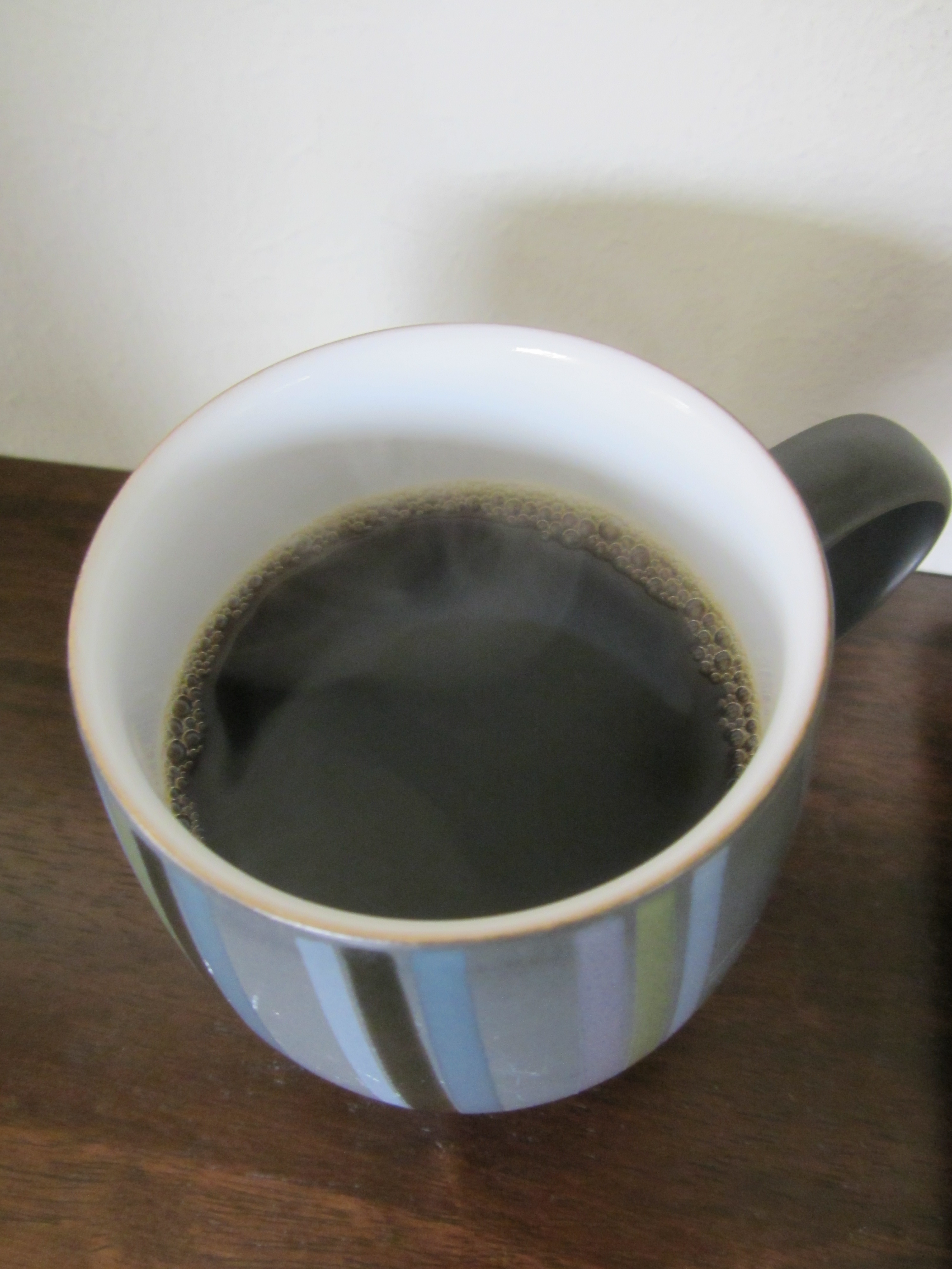 FYI, according to Alton, only about 30% of coffee is extractable (by weight), and only 2/3 of that extractable portion has pleasant flavor. I brewed my Alton coffee this morning, so my husband and I could drink the coffee at the same time. I will say that this coffee had no bitterness. I do usually add half and half to my coffee to cut down on bitterness, but I drank my cup black this morning; this may have had something to do with the fact that we purchased fat-free half and half by mistake (yuck!). My husband, the usual coffee brewer in our house, admitted that this coffee seemed less bitter than normal, and stated that he will be using 2 T of grounds per cup from here on. I highly doubt we will be using bottled water for our daily coffee brewing, but this method did result in a good cup of coffee. If you want to be guaranteed a great cup of coffee with no bitterness, give Alton’s method a try. The biggest takeaway message: use enough coffee grounds when brewing.