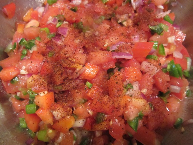 Salsa seasoned with chili powder, Kosher salt, and pepper.