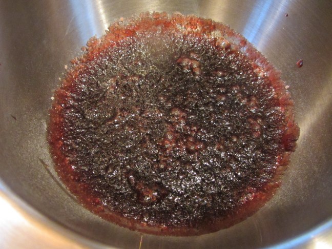 Gelatin, after blooming for 5 minutes in cherry juice.