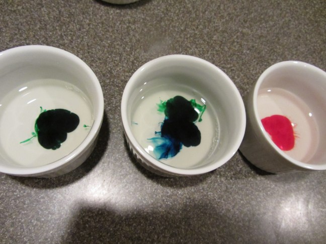 Food coloring added to gelatin mixture to make irises.