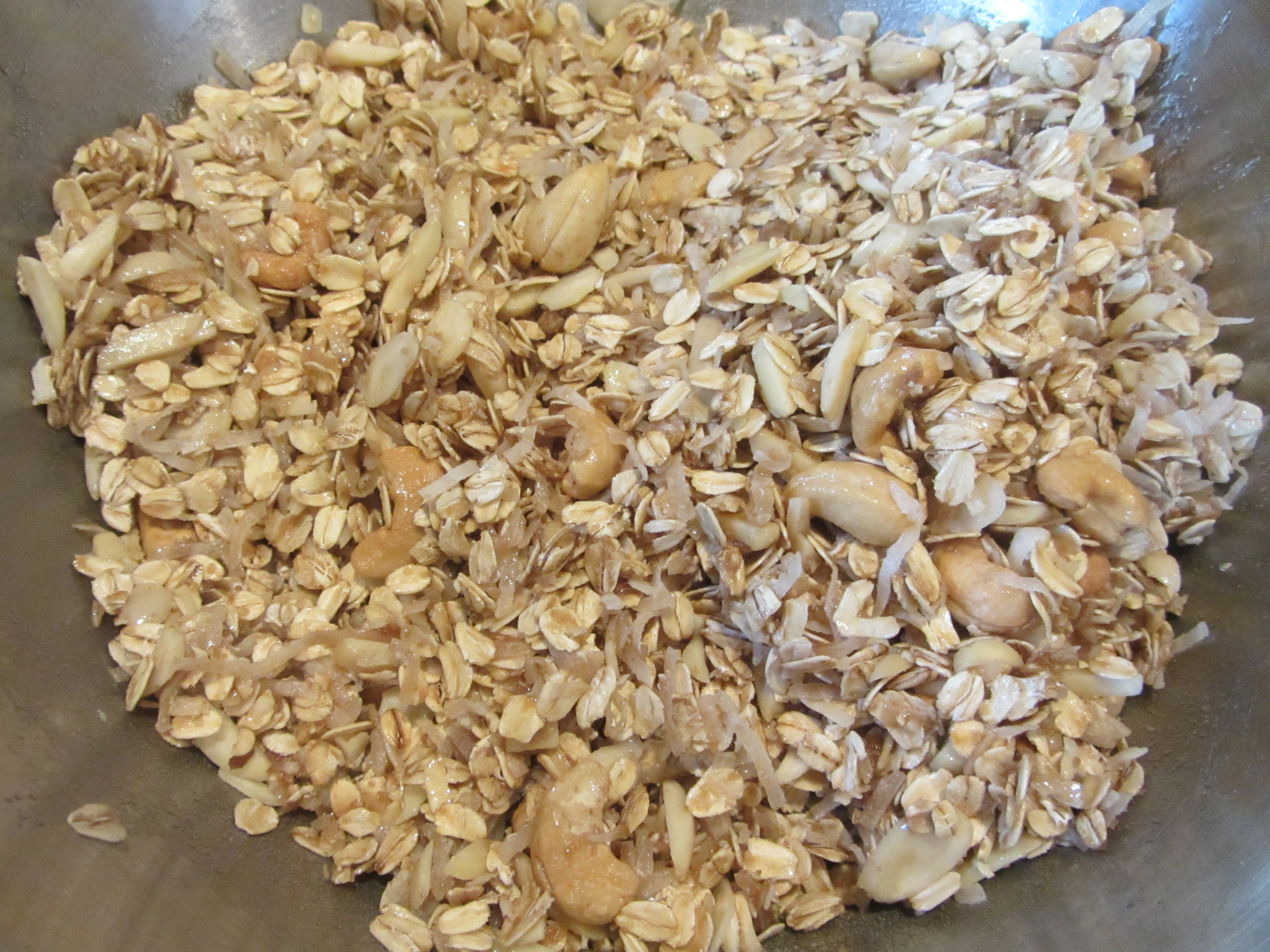 Granola after combining the dry and wet ingredients.
