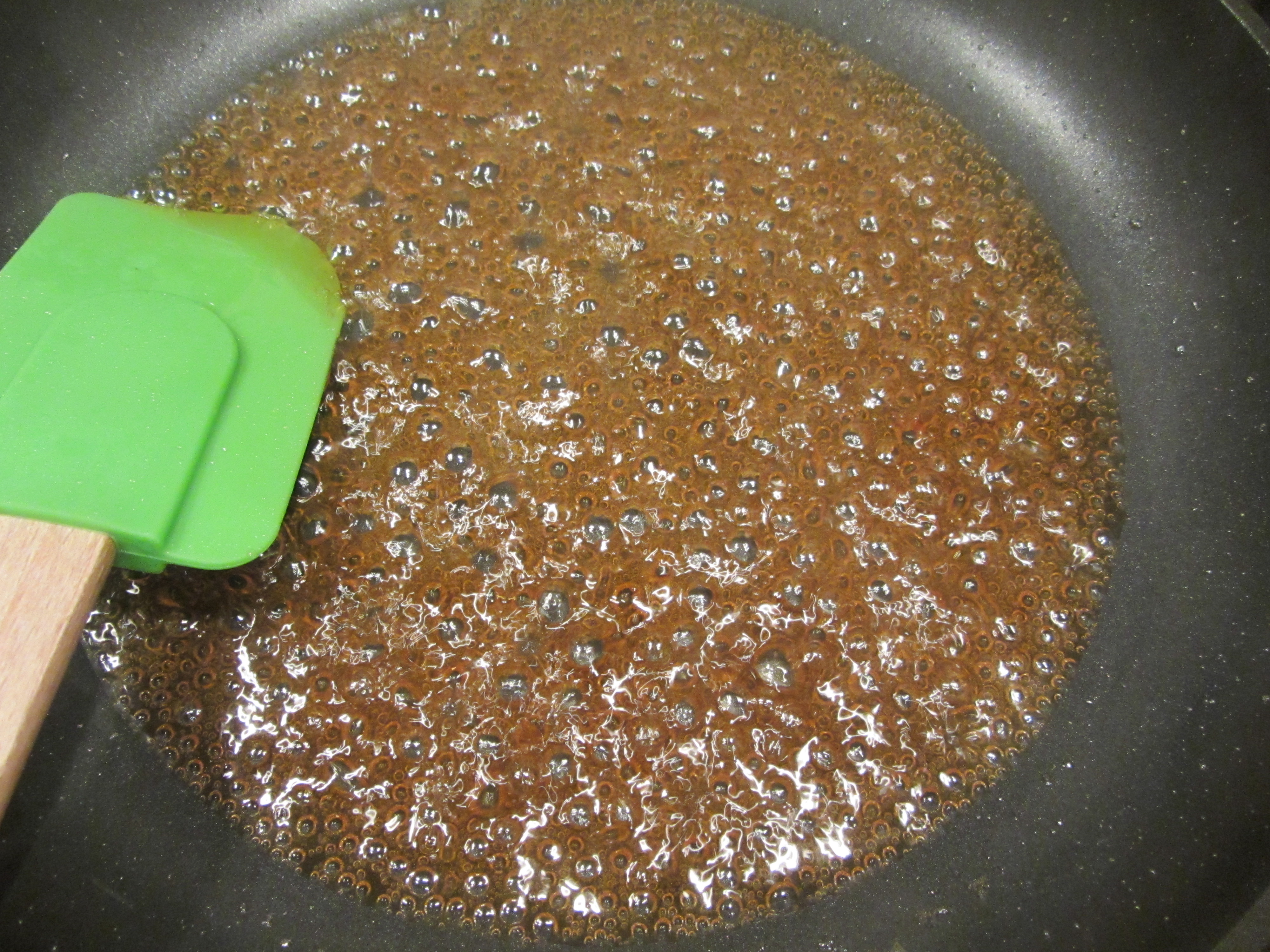 Sauce cooked until sugar has dissolved and is almost “au sec.”