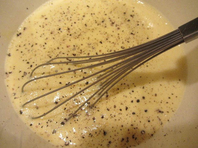 Salt and pepper added to egg mix.