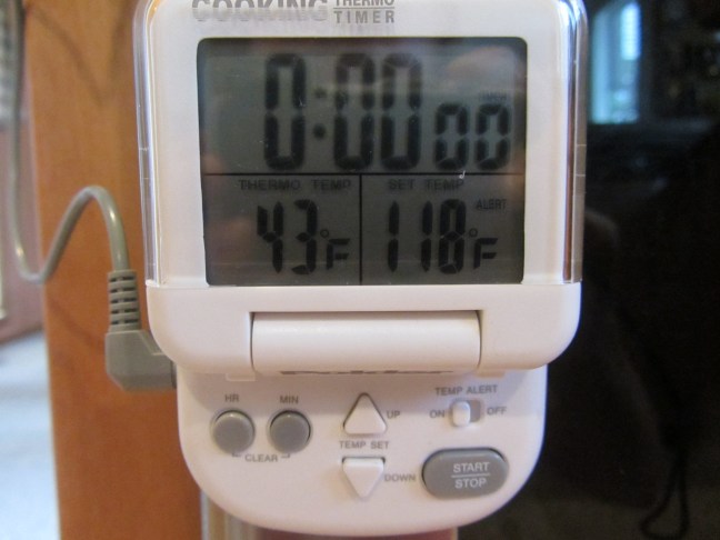 Probe thermometer, set to go off at an internal temperature of 118 degrees.