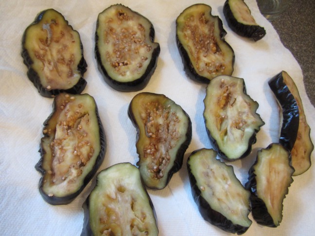 My eggplant slices after being rinsed and wrung out.
