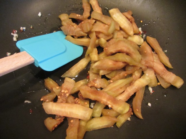 Eggplant strips added.