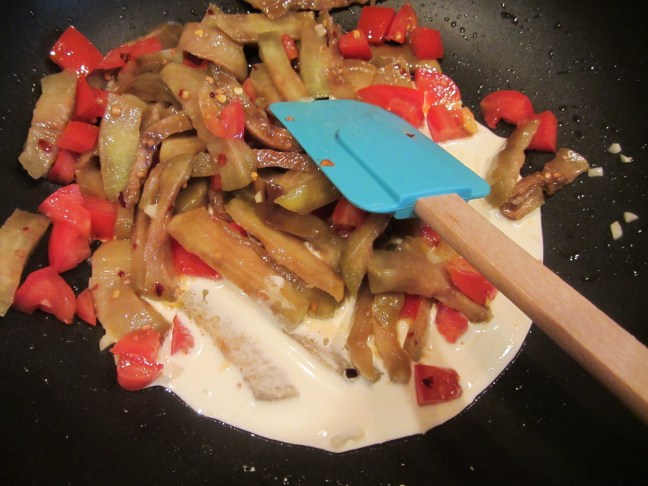 Cream stirred in.