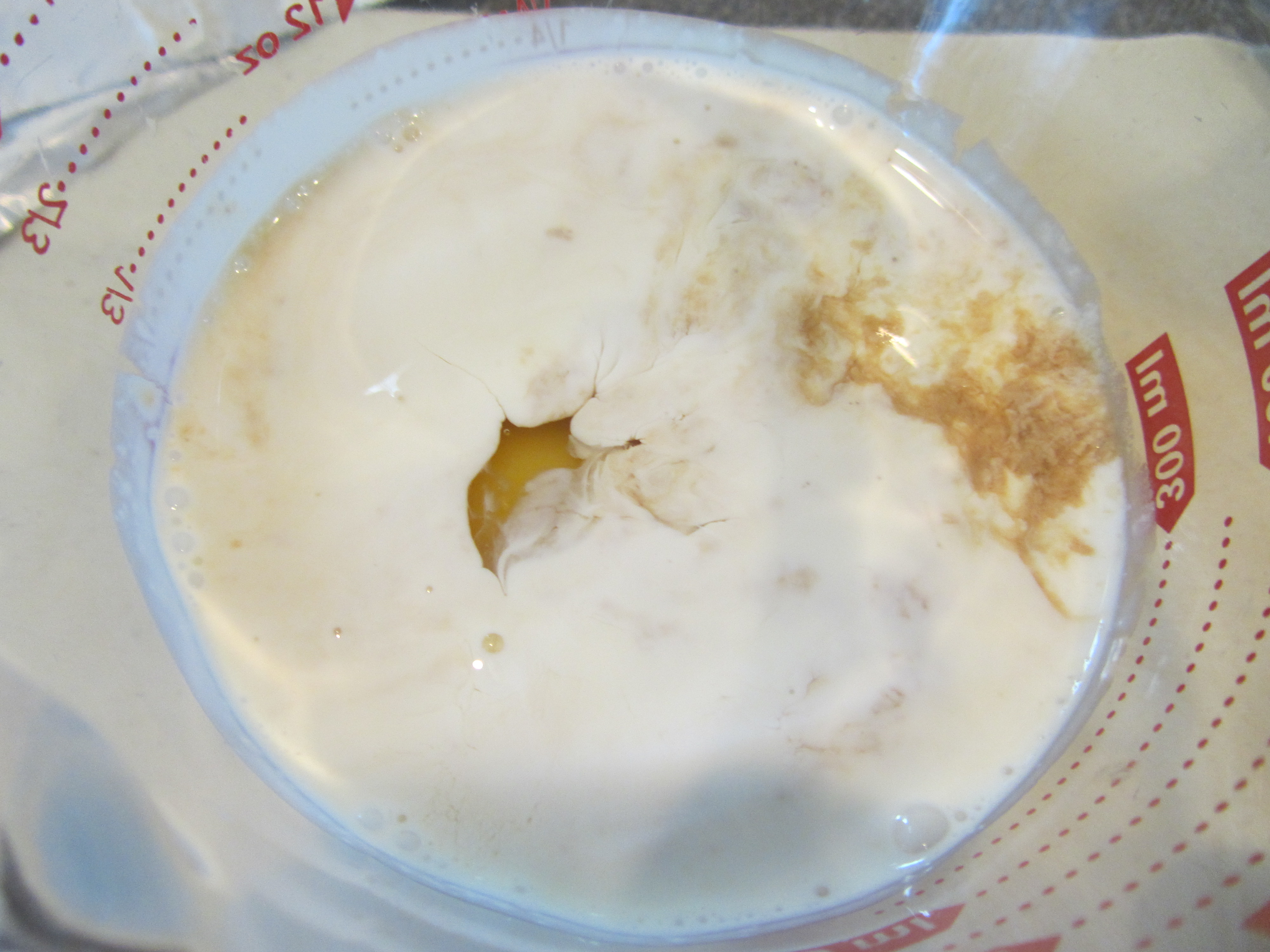 Cream, vanilla, egg yolks, and eggs.