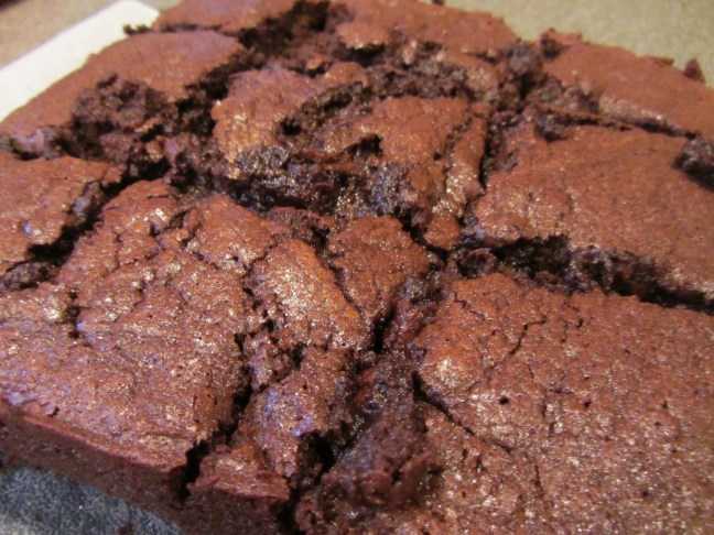 Brownies, cut with pizza cutter. Since the brownies were still warm, the edges were not smooth.