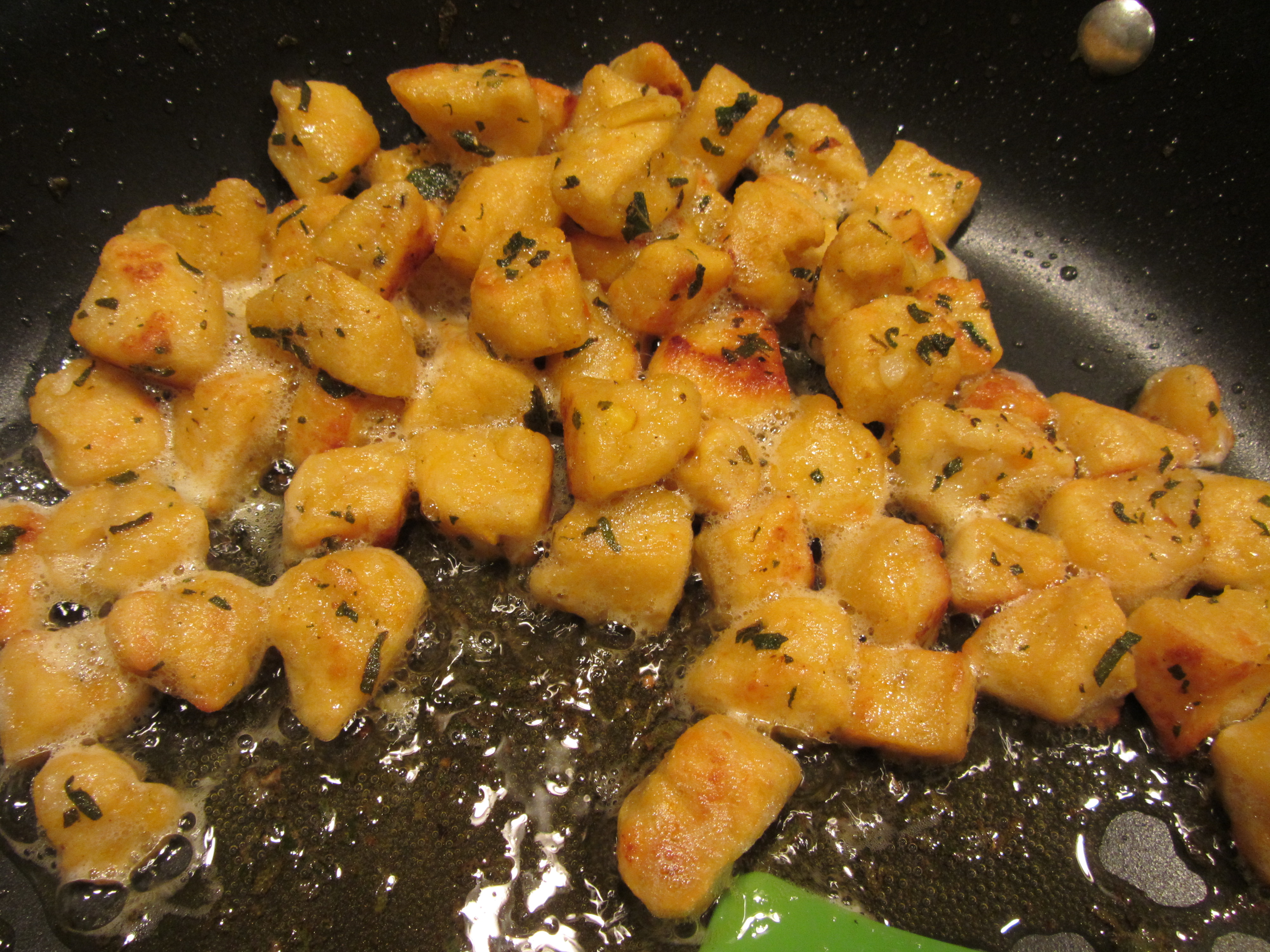 Dumplings, cooked until golden brown and crispy on all sides.