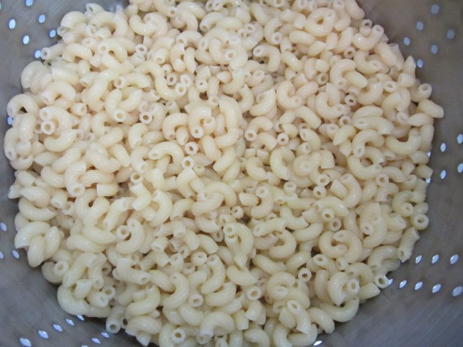 1/2 pound of elbow macaroni, cooked for 6 minutes and rinsed under cold water.