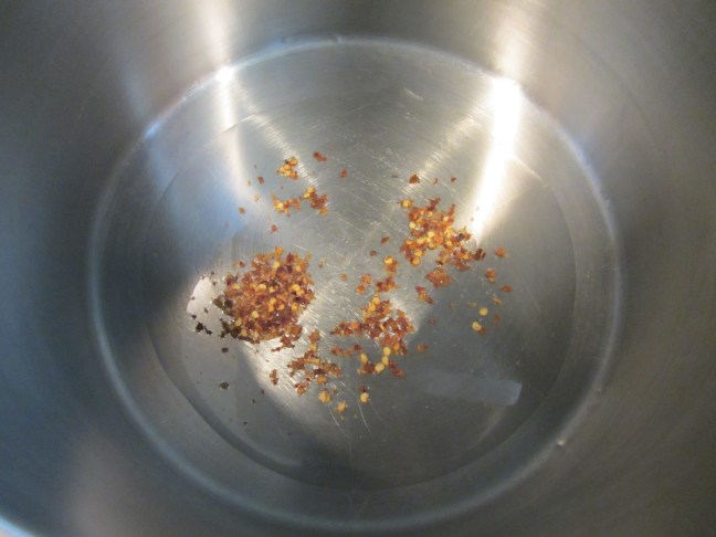 Chile flakes heating in oil.