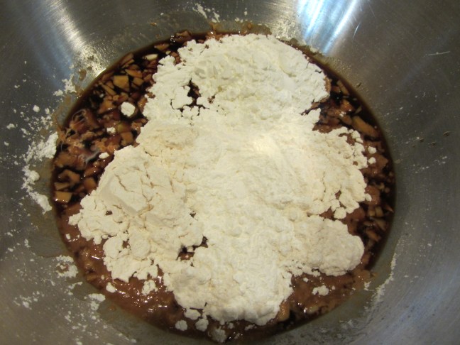Garlic, ginger, soy sauce, flour, and cornstarch combined for marinade.