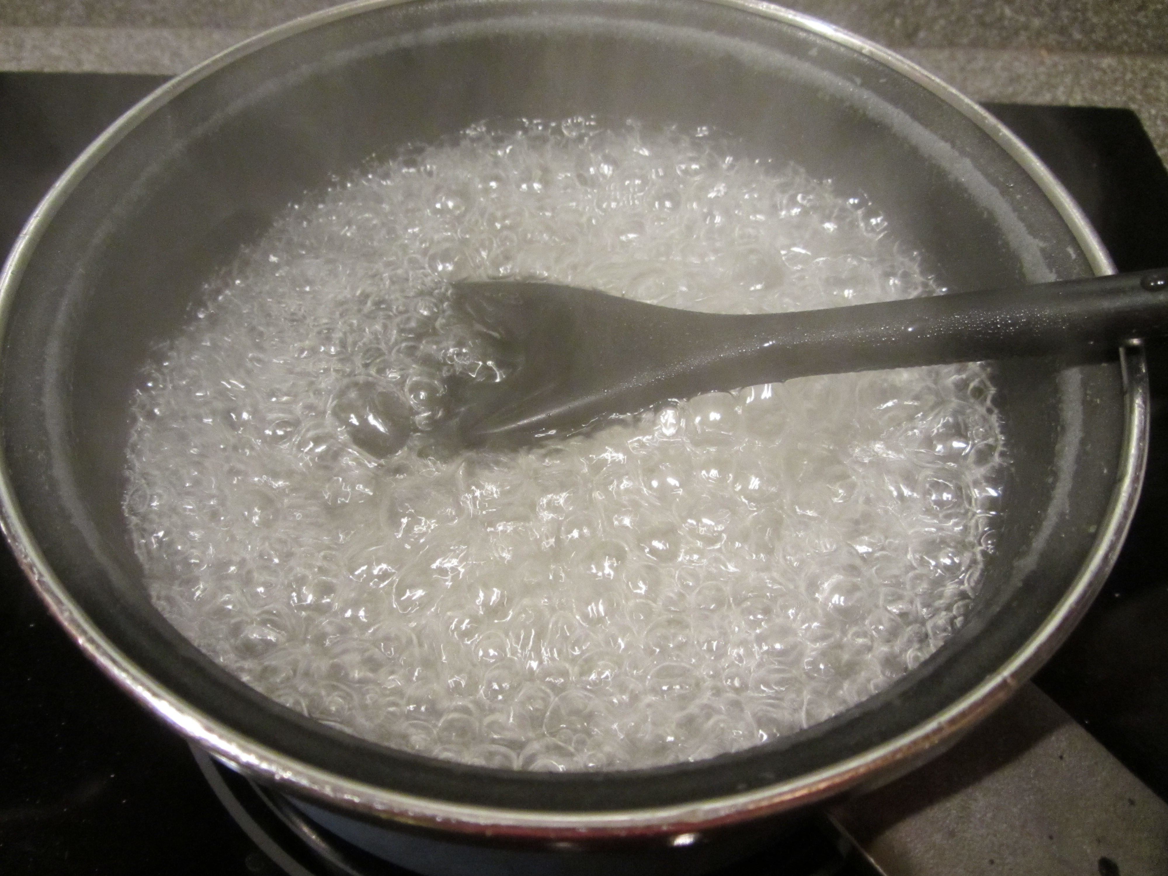 Sugar dissolving in boiling water.