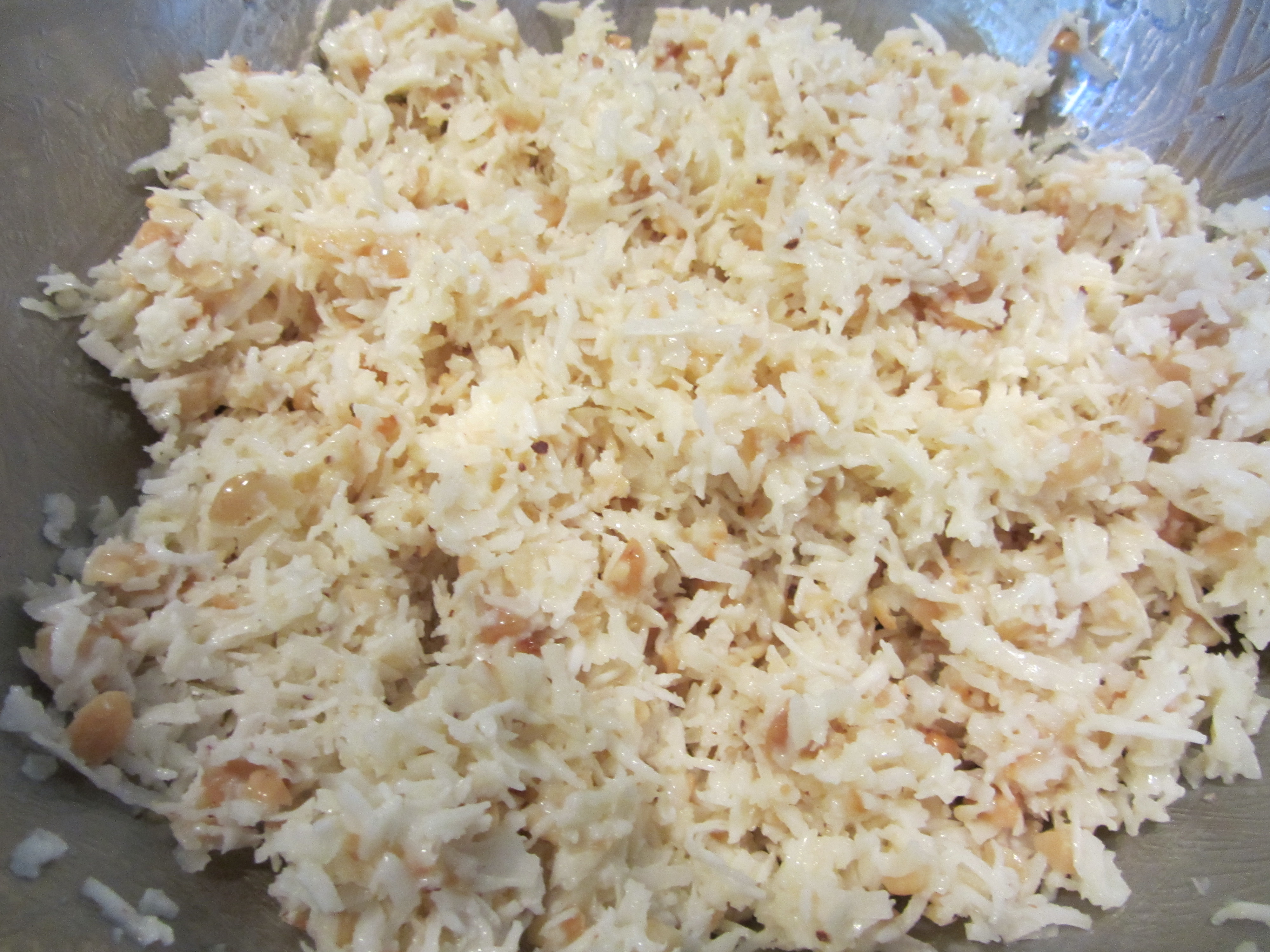 Coconut mixture after being combined by hand.