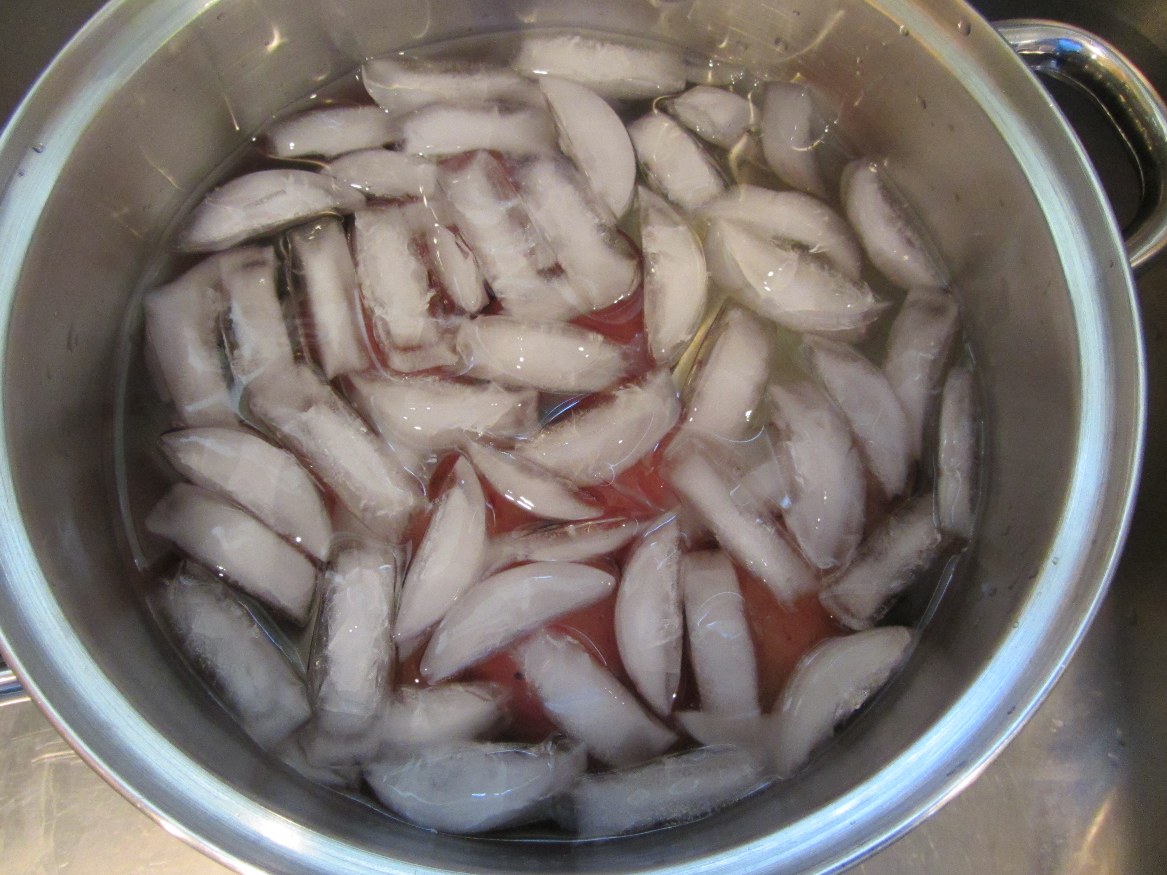Potatoes in ice bath for 2-3 minutes.