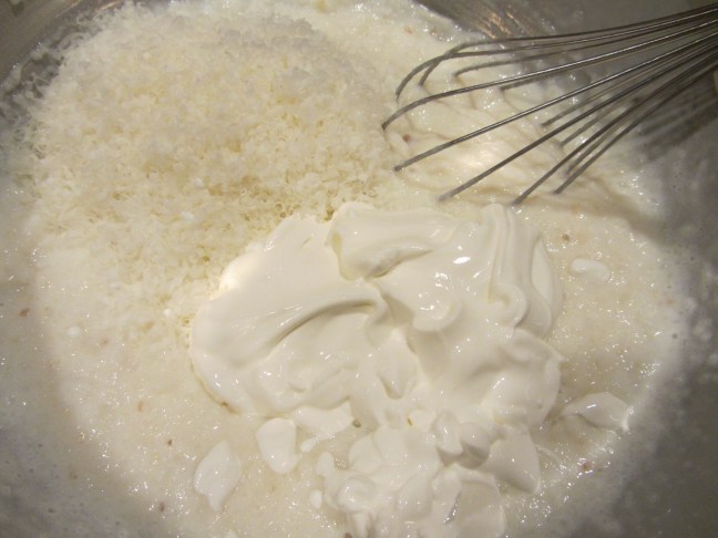Buttermilk, sour cream, and Parmesan whisked into riced potatoes.