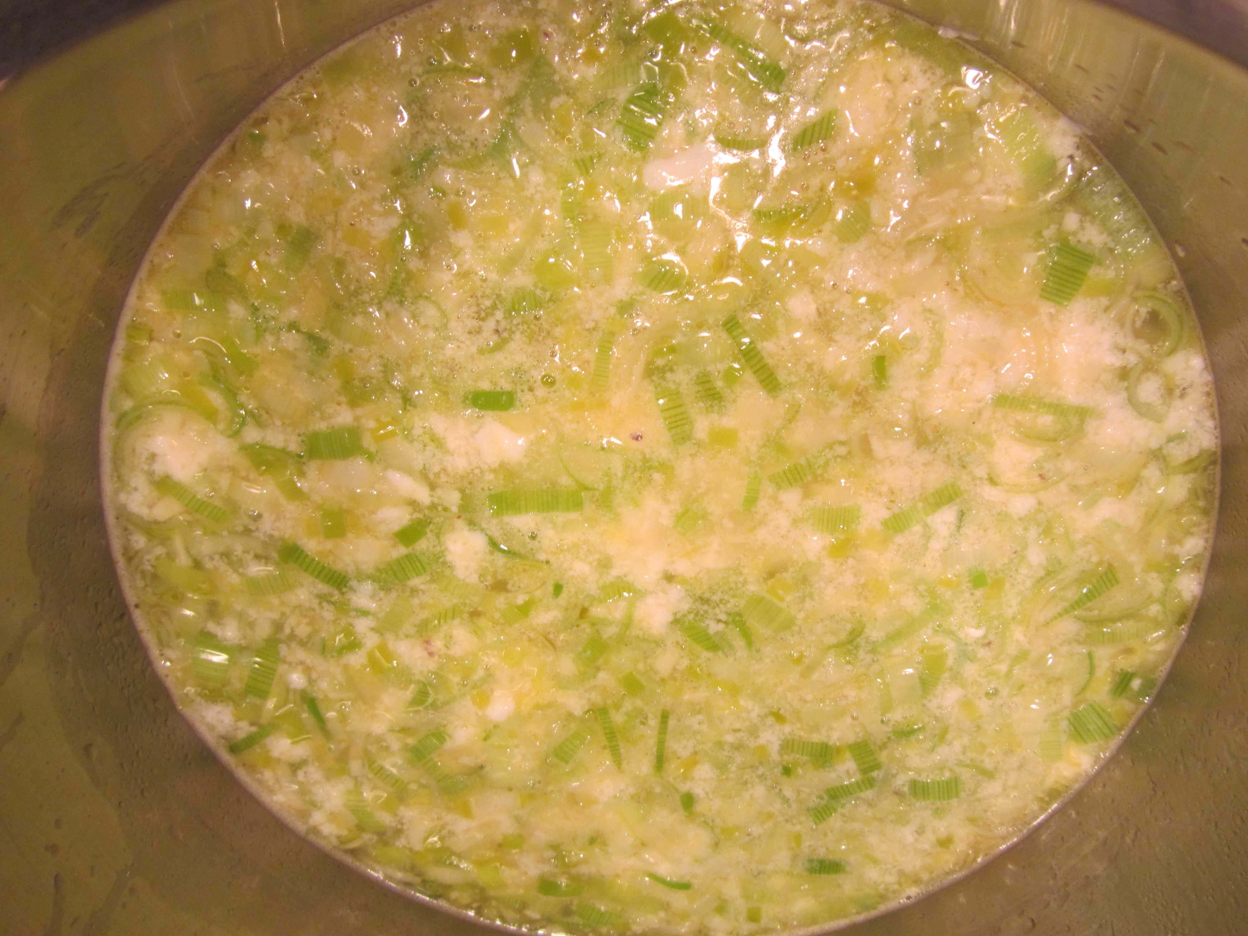 Potatoes added to soup.