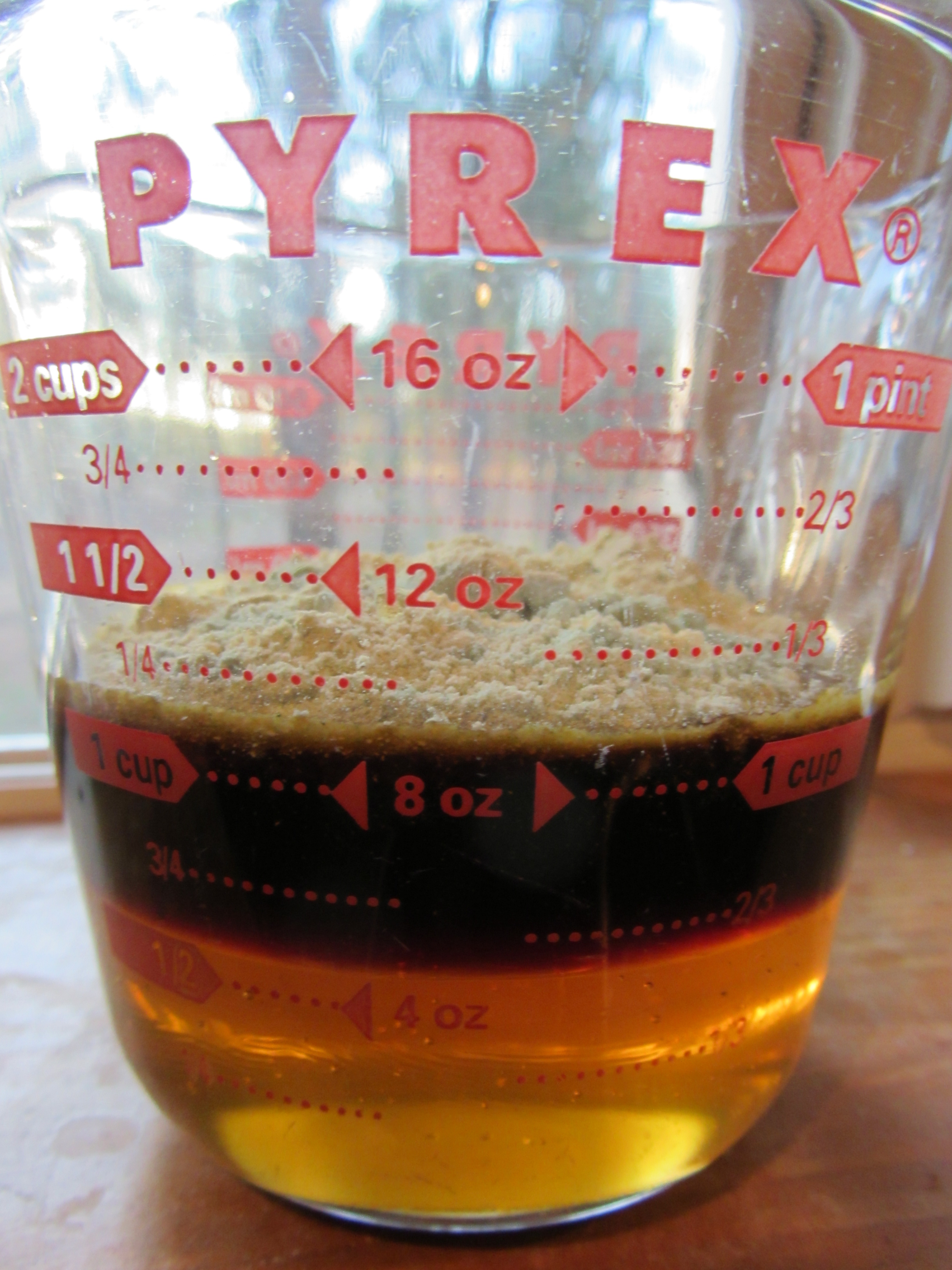 Soy sauce, honey, and wasabi powder for the marinade/dipping sauce.