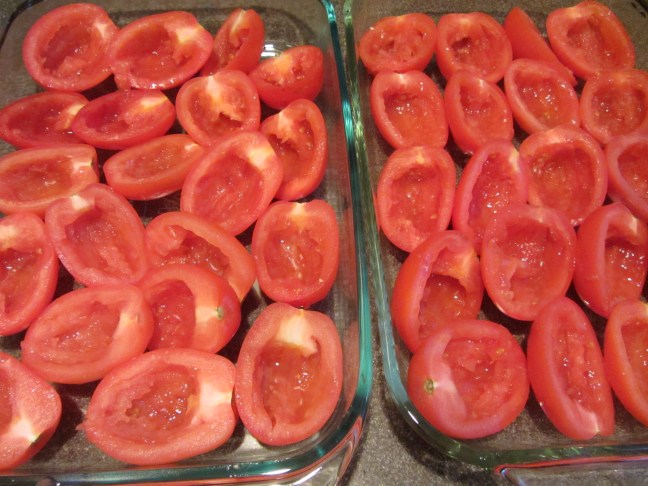 20 Roma tomatoes, halved and seeded.