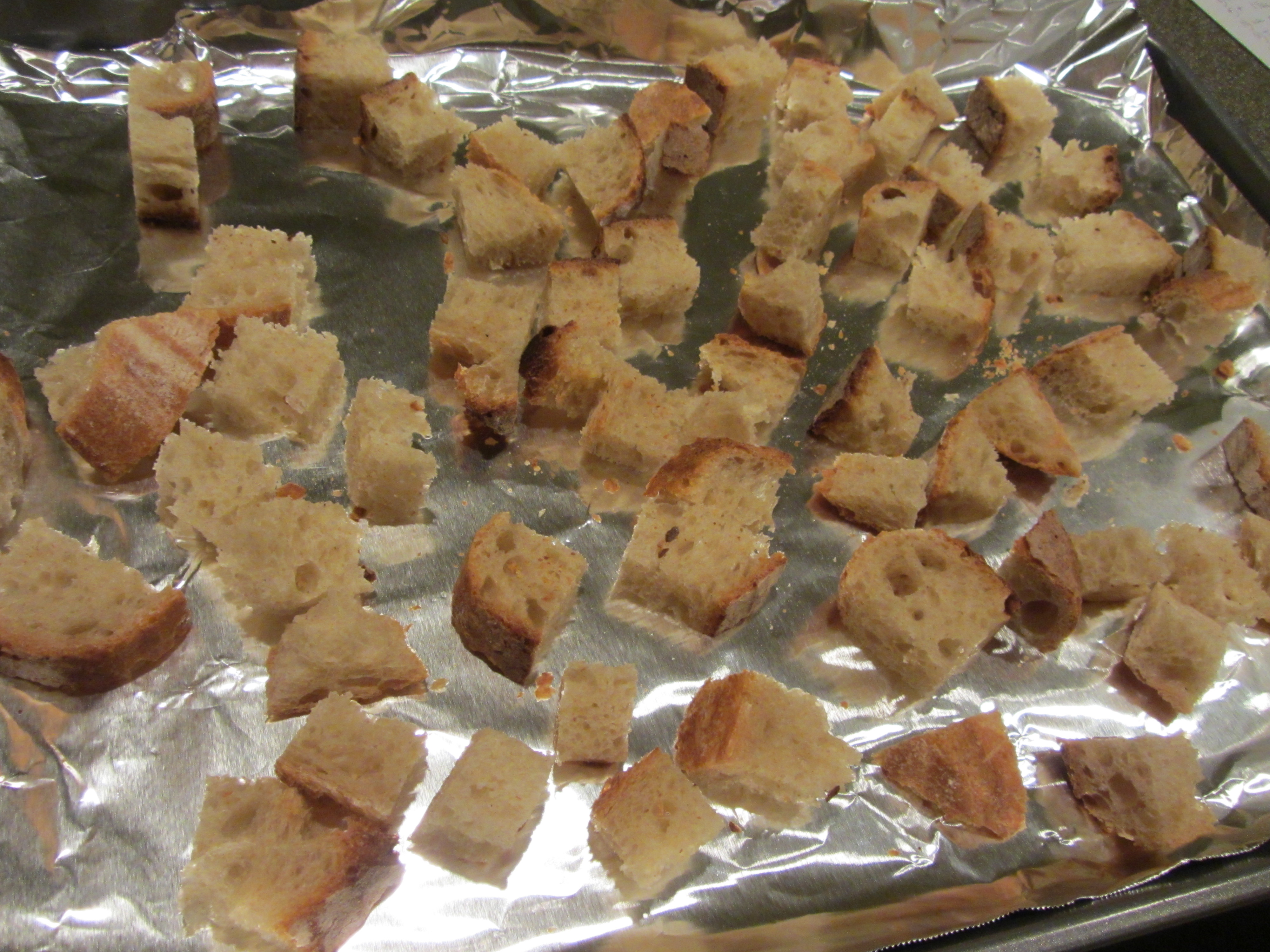 Bread cubes, left to dry overnight.