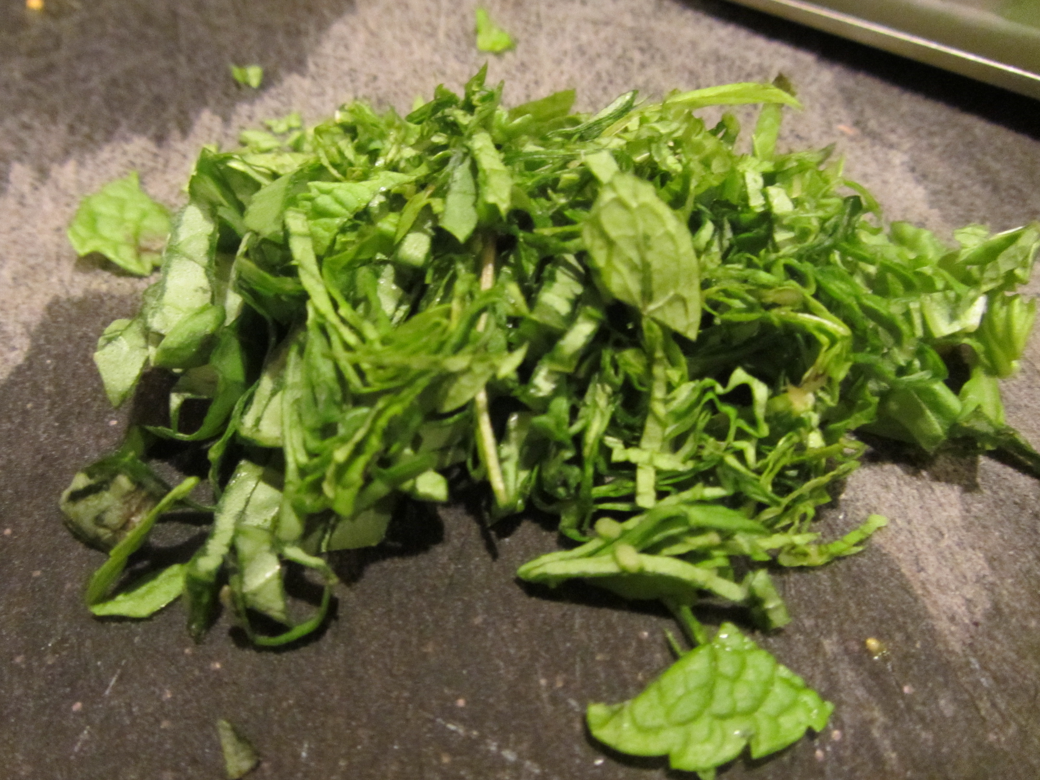 Chiffonade of basil and mint.