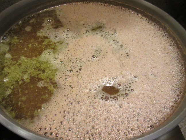 3/4 ounce of Kent Goldings hops and 1 ounce Cascade hops added to pot for 10 minutes.