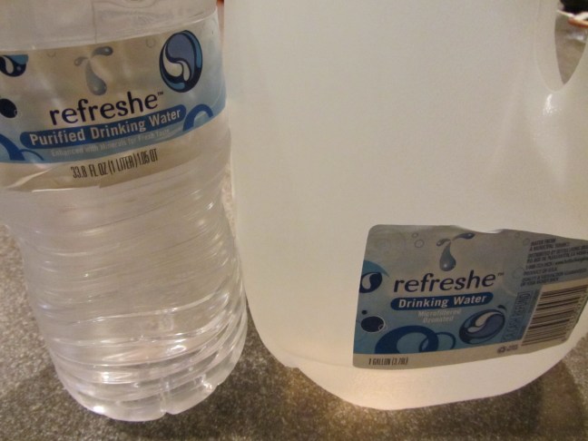 A gallon plus a pint of cold bottled water.