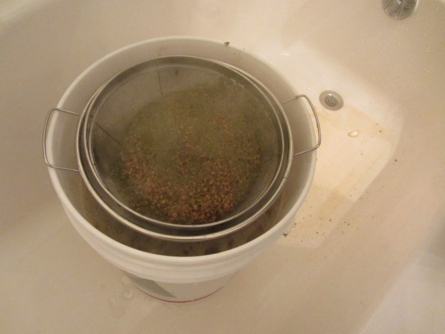 The mash, after being strained into the bucket with cold water and ice.