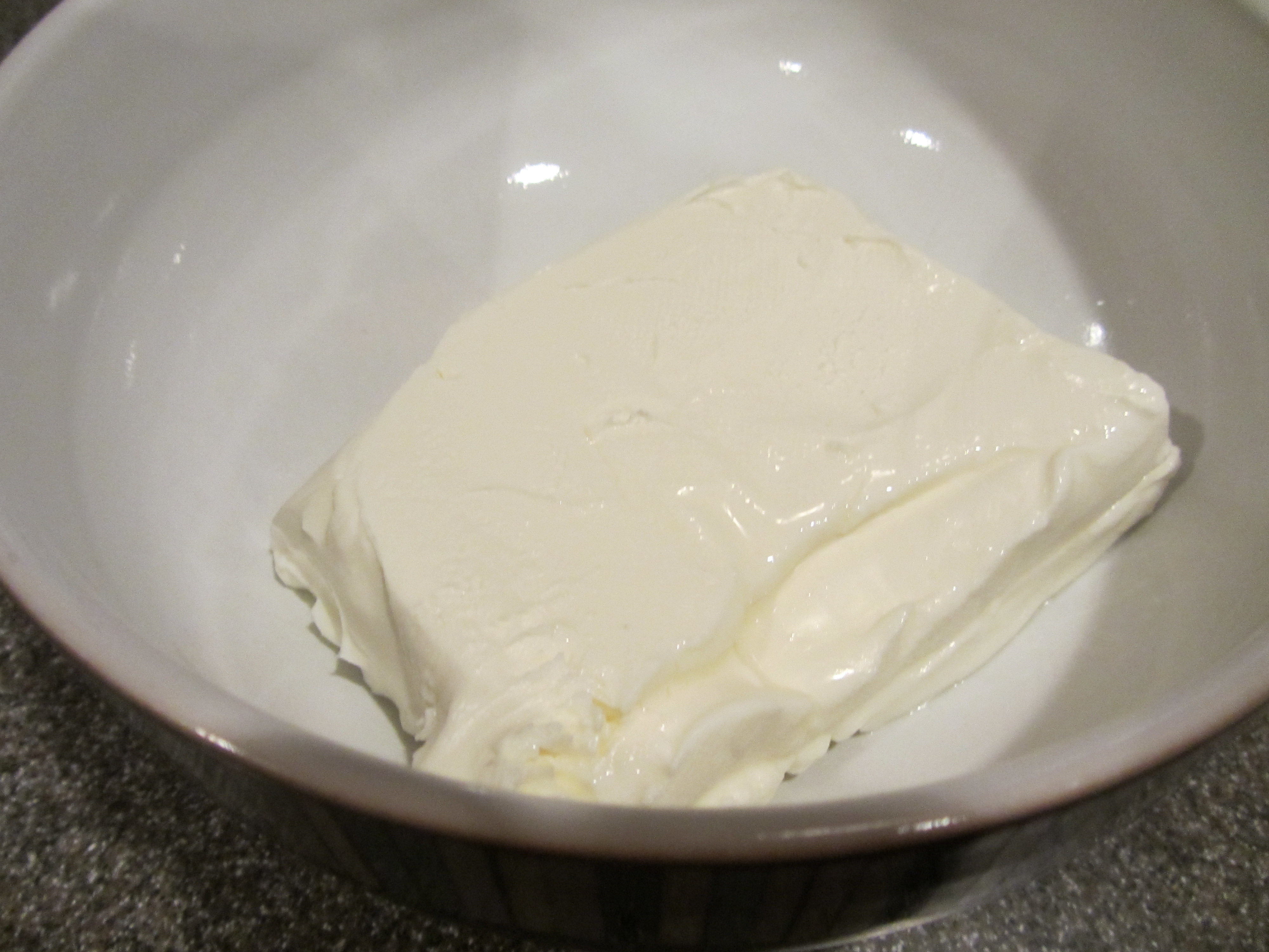 Cream cheese, to be softened in the microwave.