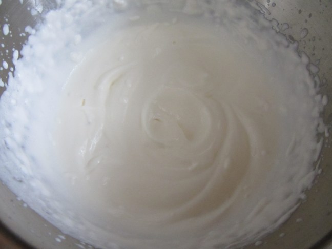 Heavy cream, whipped to have soft peaks.