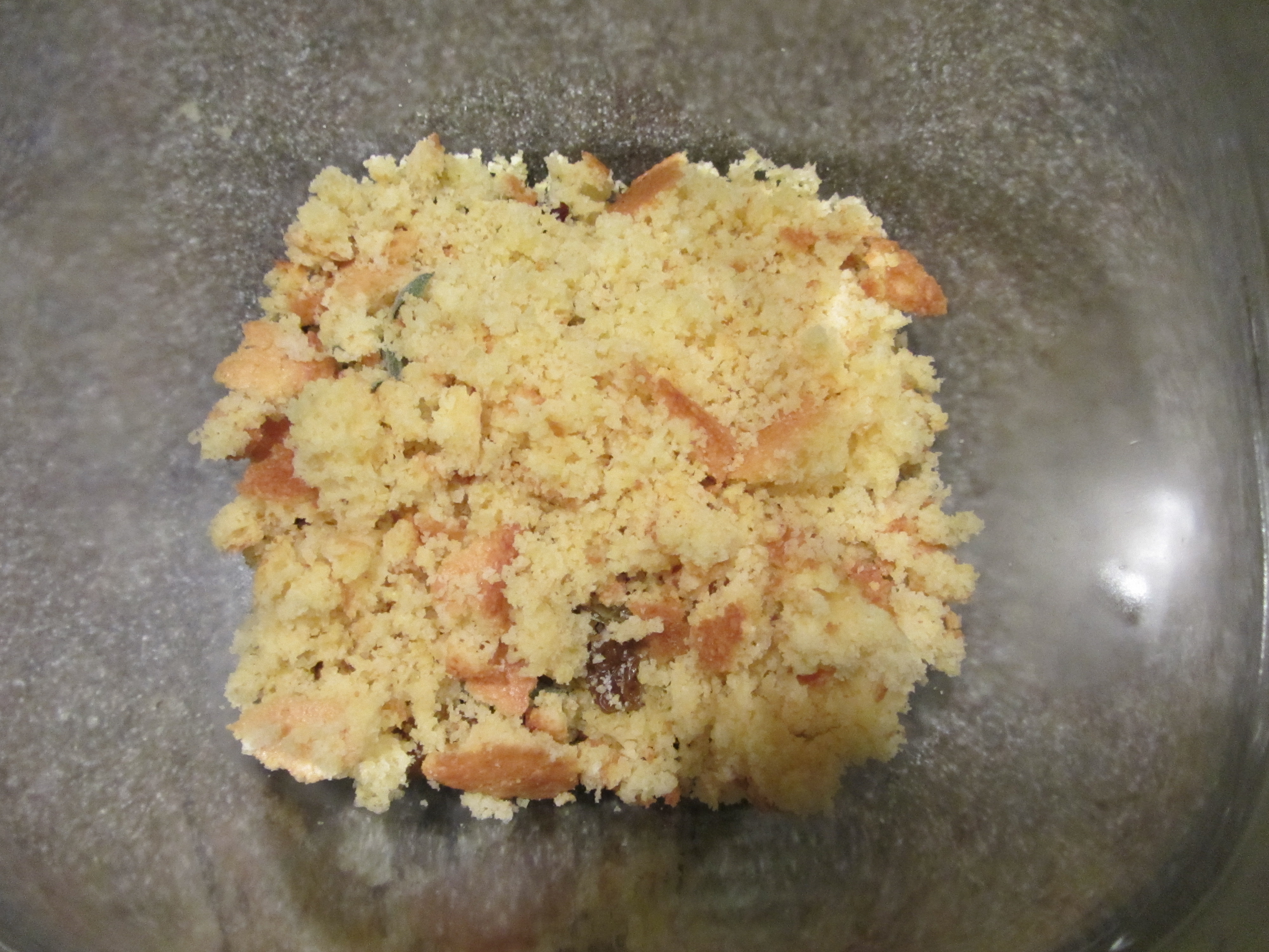Dried cherries, golden raisins, walnuts, fresh sage, Kosher salt, pepper, and cornbread.