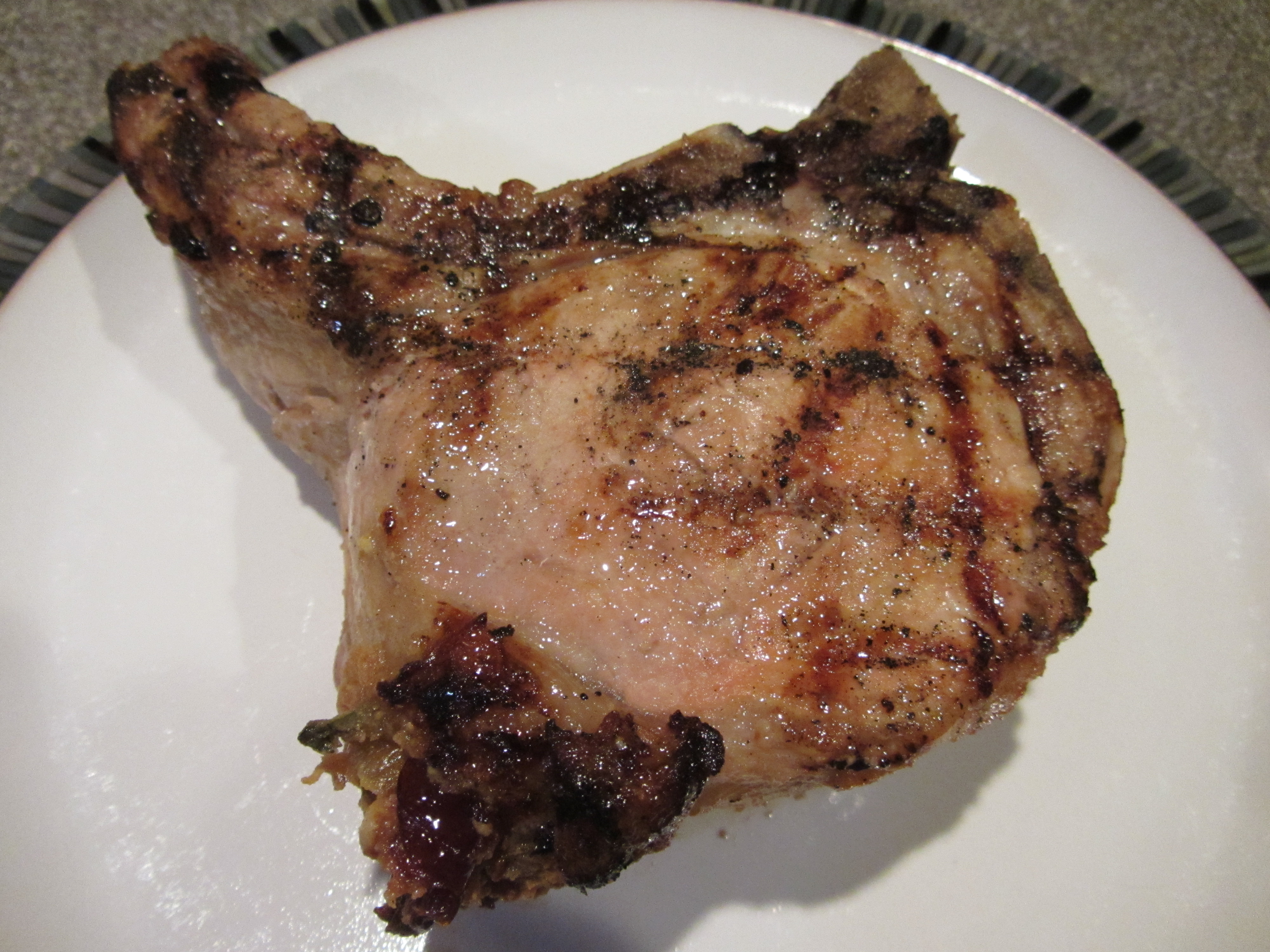 Pork chop after cooking to internal temperature of 140.