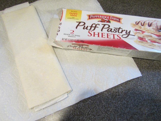 A sheet of puff pastry, thawing.