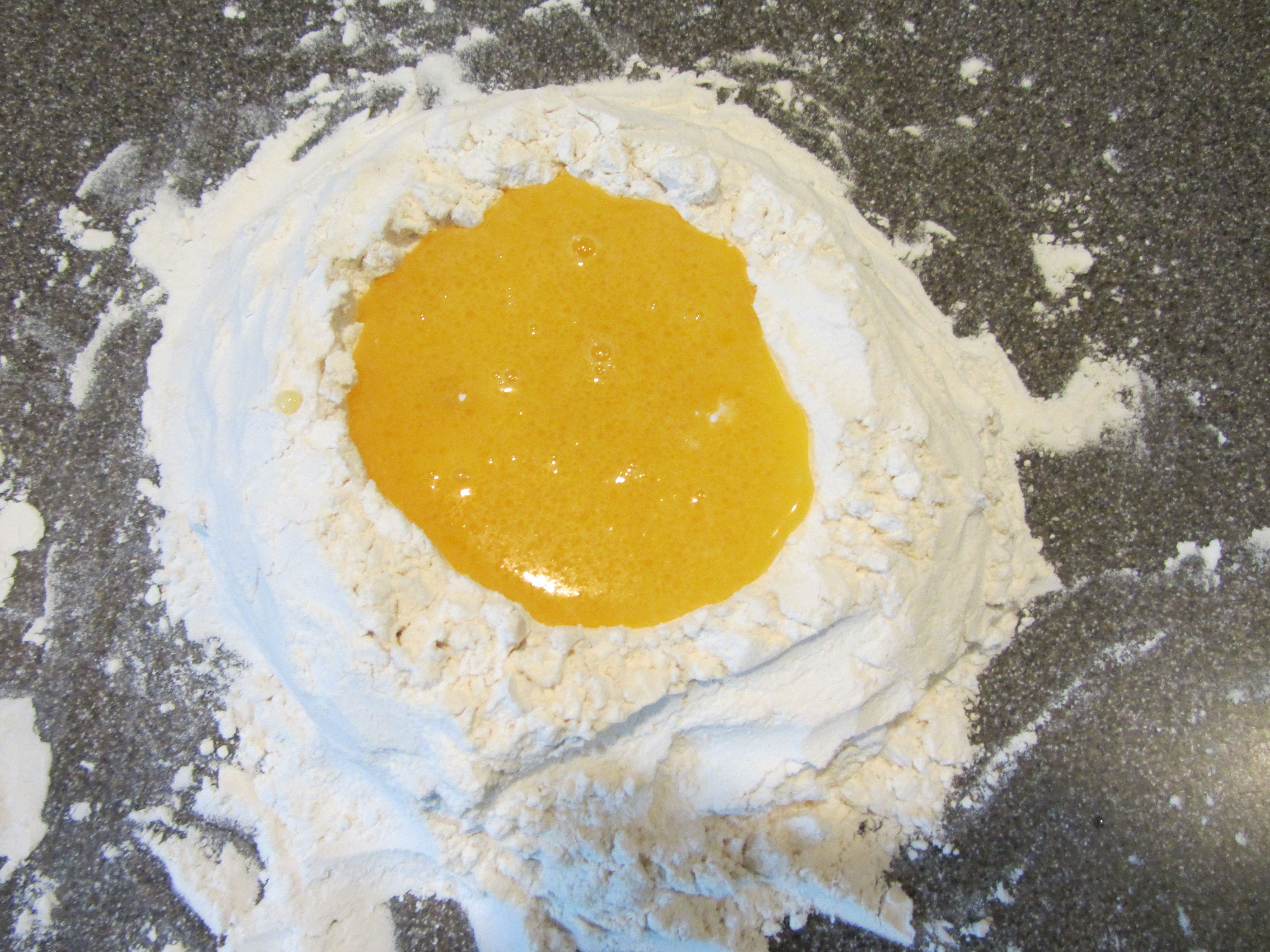 More of the egg mixture added, as the flour gradually gets incorporated.