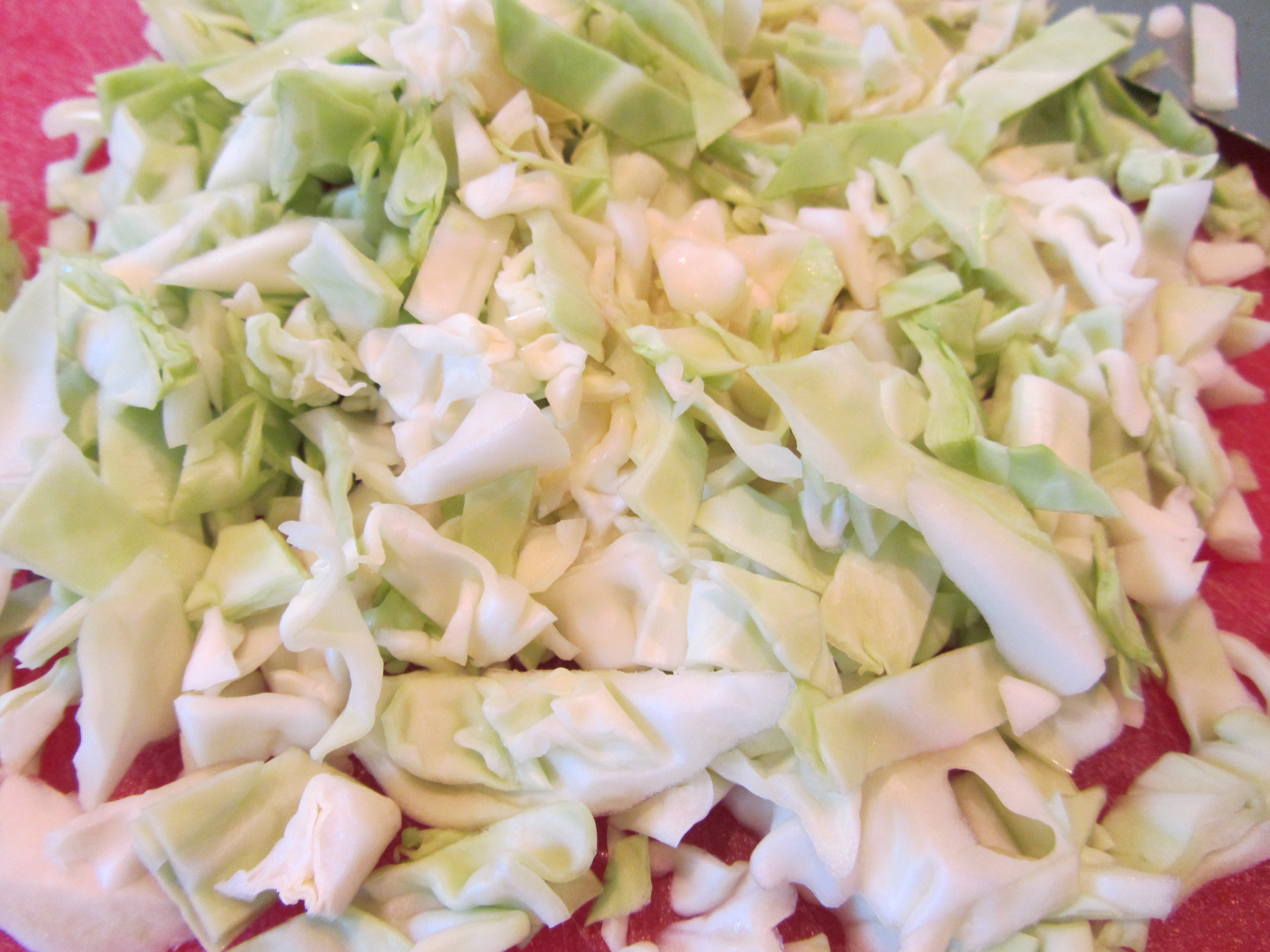 Half a head of green cabbage, sliced.
