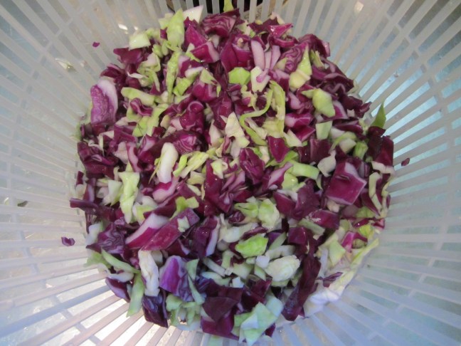 Cabbage, rinsed and ready to spin in the salad spinner.