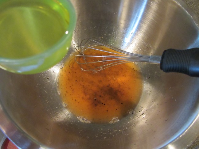 Olive oil, whisked into dressing.