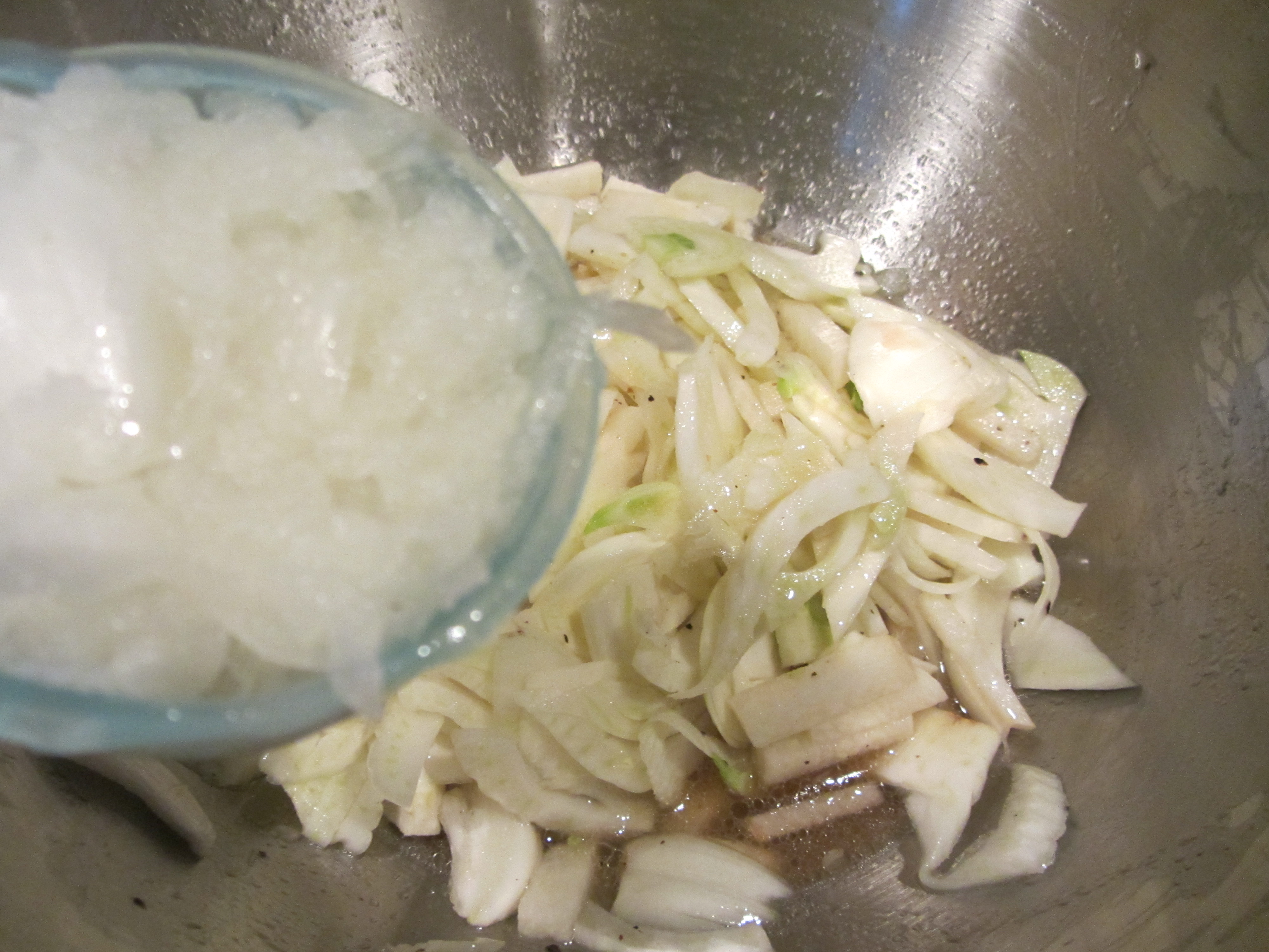 Sliced fennel and grated onion added to slaw.