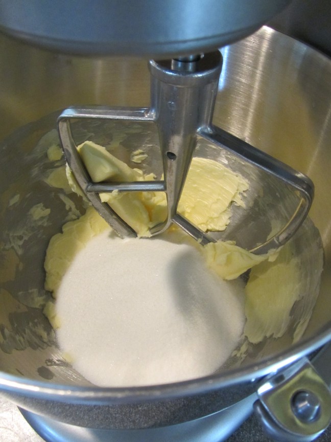 Sugar and Kosher salt added to shortening.