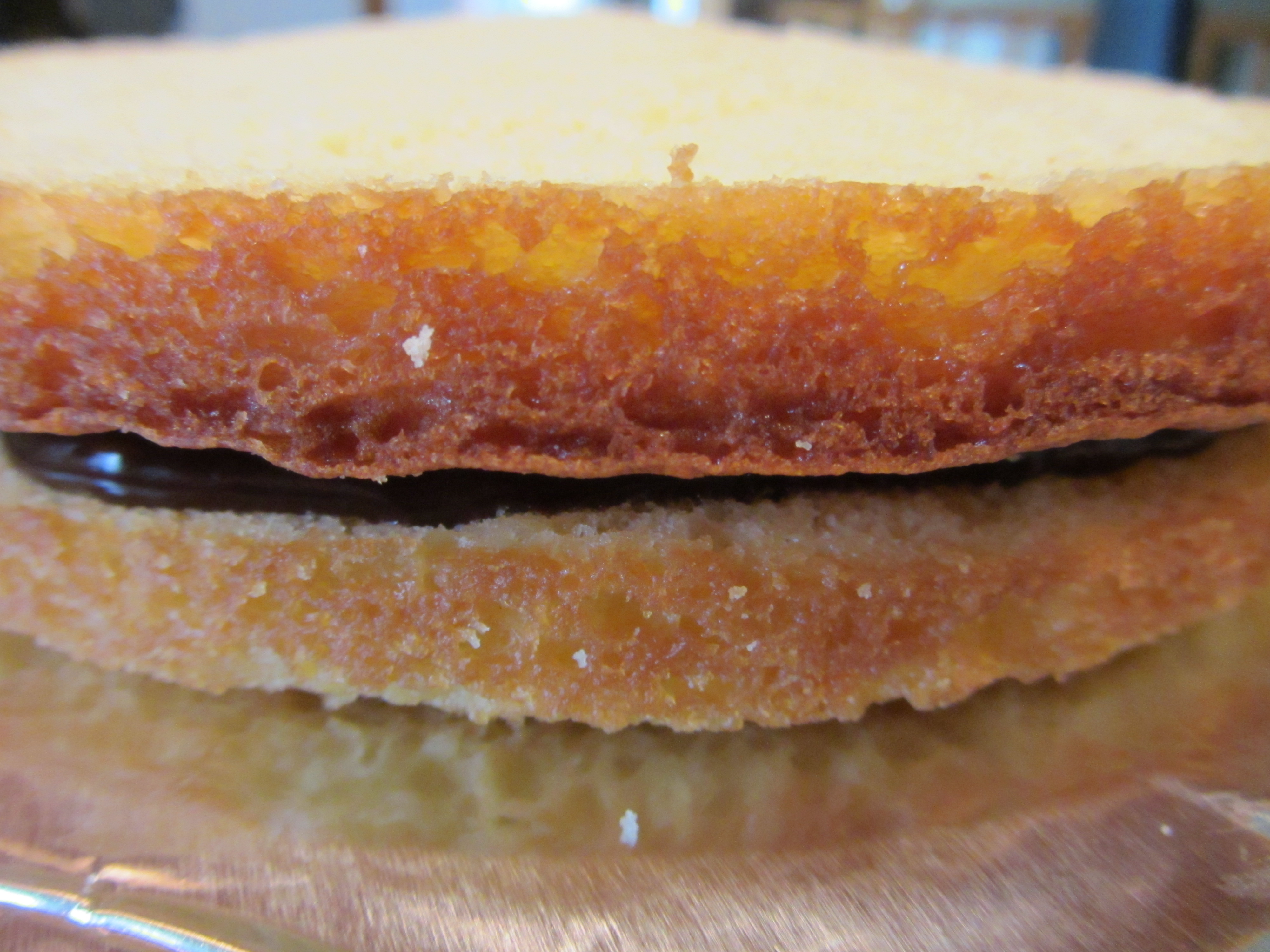 Ganache between first two cake layers.
