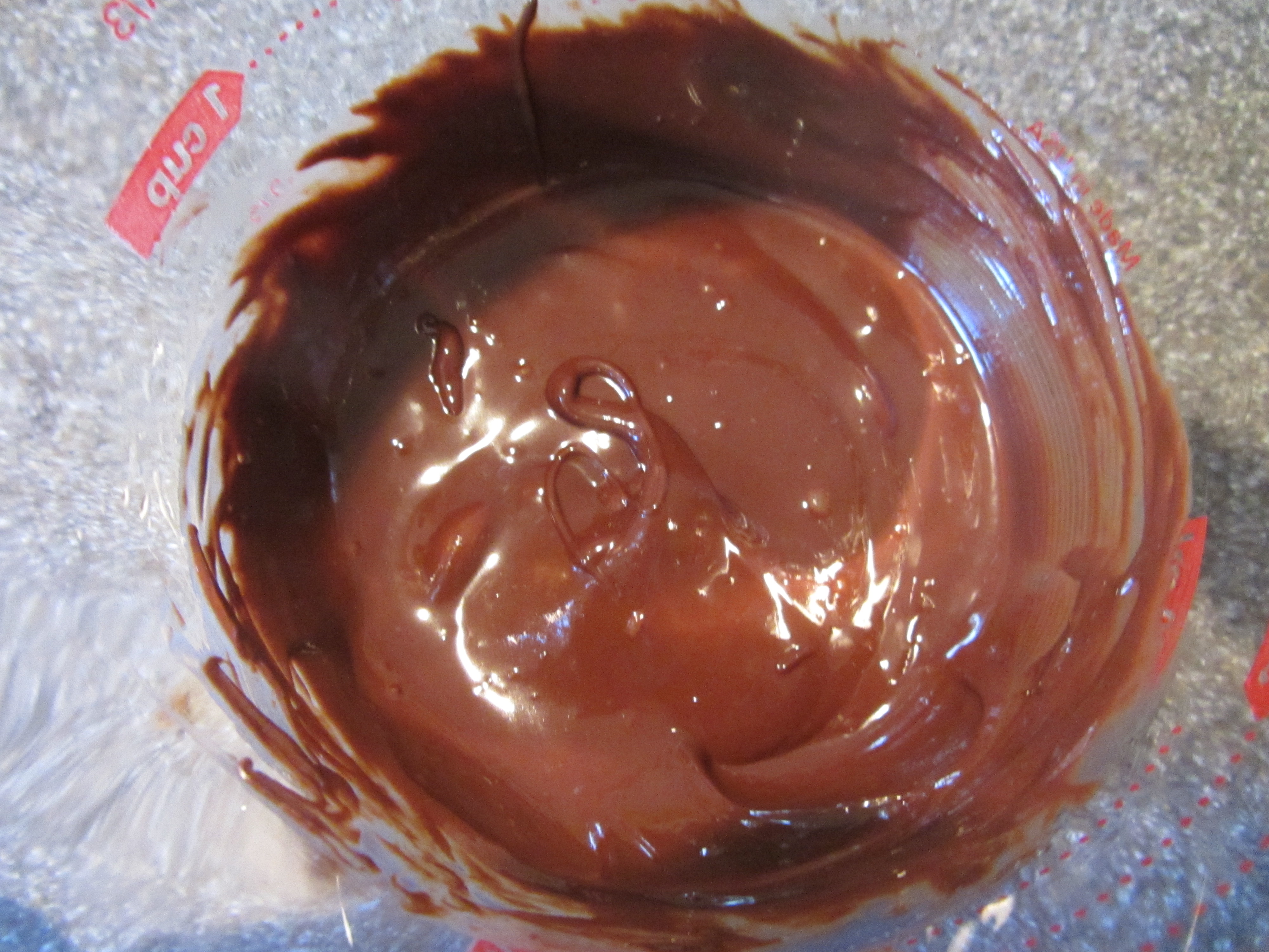 Chocolate chips and canola oil after being microwaved for ~1 minute.