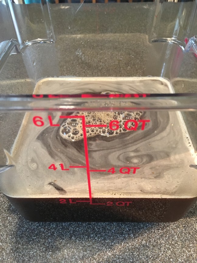 Four pounds of water added to salt and molasses to make brine.